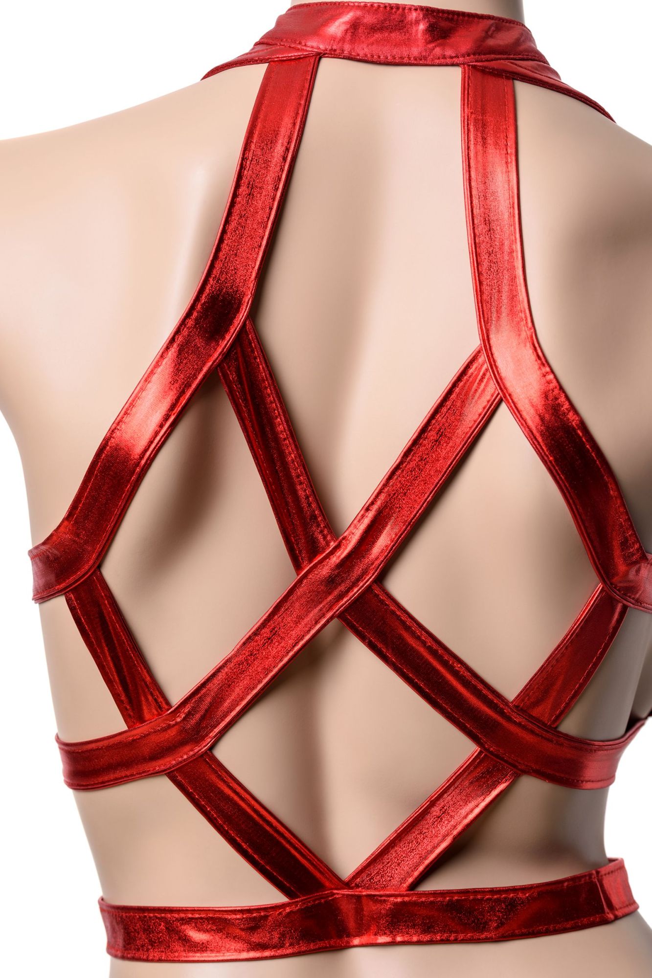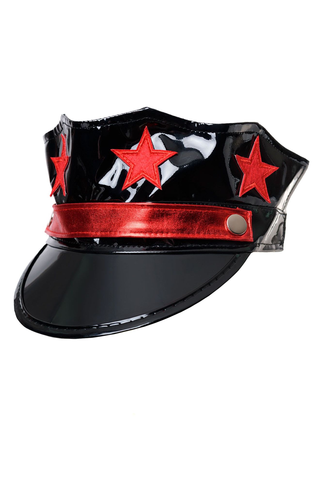 Этот игровой костюм из эластичного материала wetlook с контрастными лаковыми вставками - эффектный образ для страстных натур. Стрепы, отложной воротник с манишкой на молнии и стреп-имитация чокера формируют единую деталь костюма – топ. Стрепы на трусиках привлекают внимание к бедрам. Козырек на эластичной резинке, металлические затемненные очки-авиаторы, пластиковые наручники и стреп-митенка на кнопке дополняют образ. Чулки в крупную сетку на широкой резинке с усиленными носочками входят в комплект.
