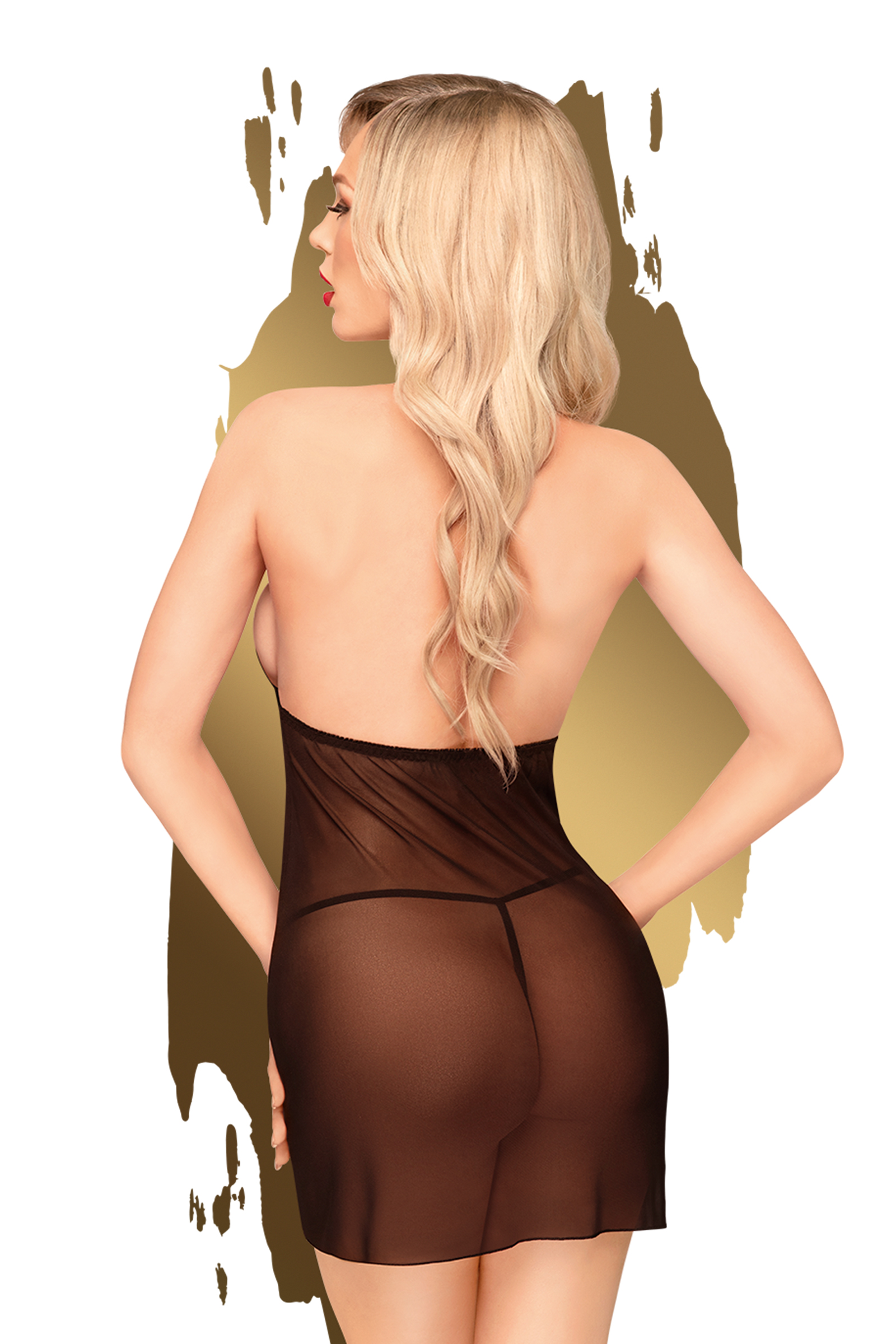 Если уж рассказывать сказку на ночь своему партнёру, то только в этом мини-платье из мелкой сетки. Сквозь его нежнейшую струящуюся ткань фантазийно проявляются черты грядущего наслаждения, которое начинается сразу после слов "И жили они долго и счастливо...". Роскошное плетение кружева идеально обнимает грудь, оставляя спинку открытой. Но шаловливые завязки на шее готовы сдаться без боя, а идущие в наборе трусики-стринги сохранят интригу хэппи энда до момента икс. Состав: 73% Полиэстер, 27% Эластан В комплекте: комбинация и стринги Цвет: черный Размер: M/L