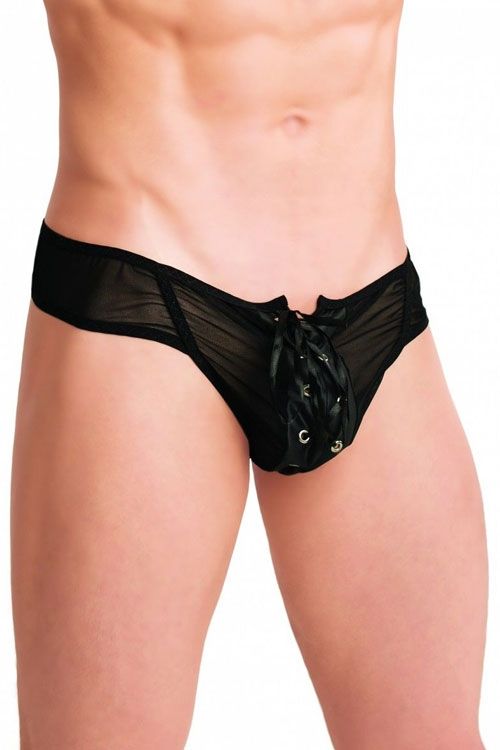 Сексуальные мужские трусы из полупрозрачной ткани со шнуровкой отлично дополнят любой эротический образ.
