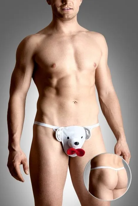 Стринги с забавной мордочкой медвежонка белого цвета.