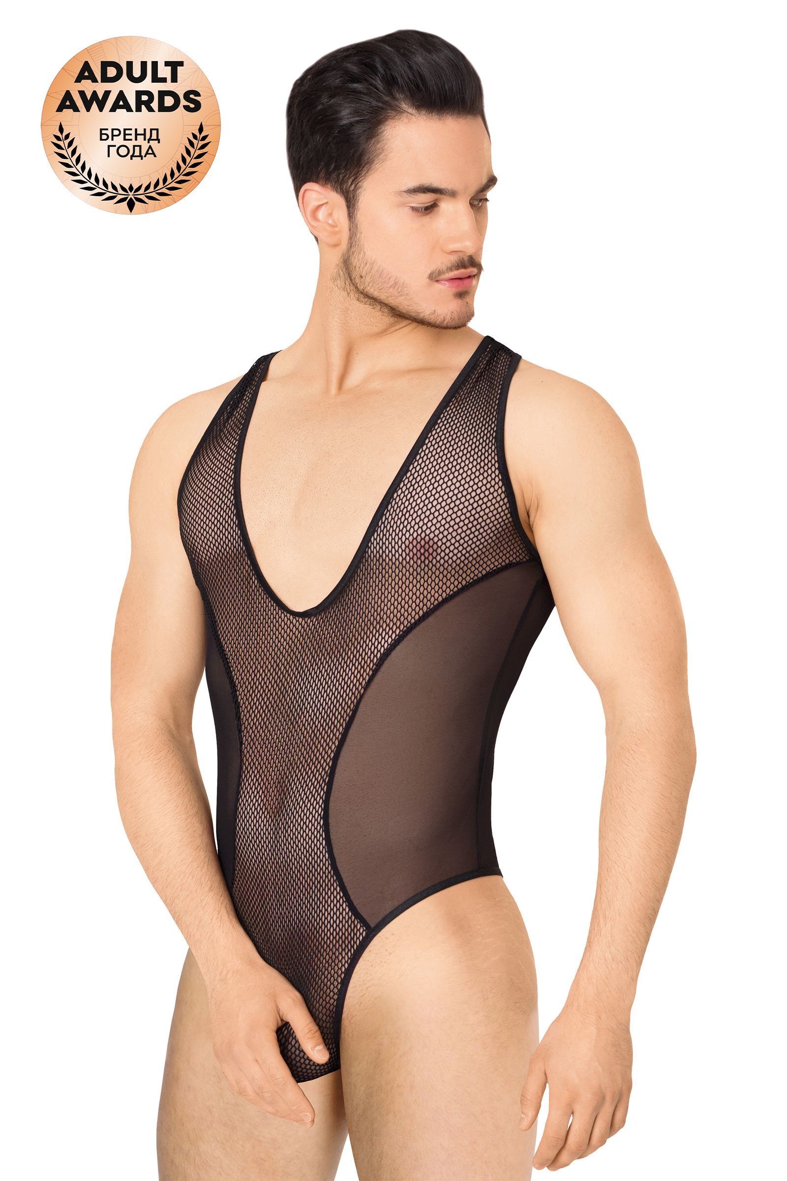 Экстравагантный комплект для смелых мужчин. Футболка и шорты выполнены из крупной эластичной сетки. Задняя часть трусов выполнена из мягкой мелкой сеточки, спереди вставка из такой же сеточки.