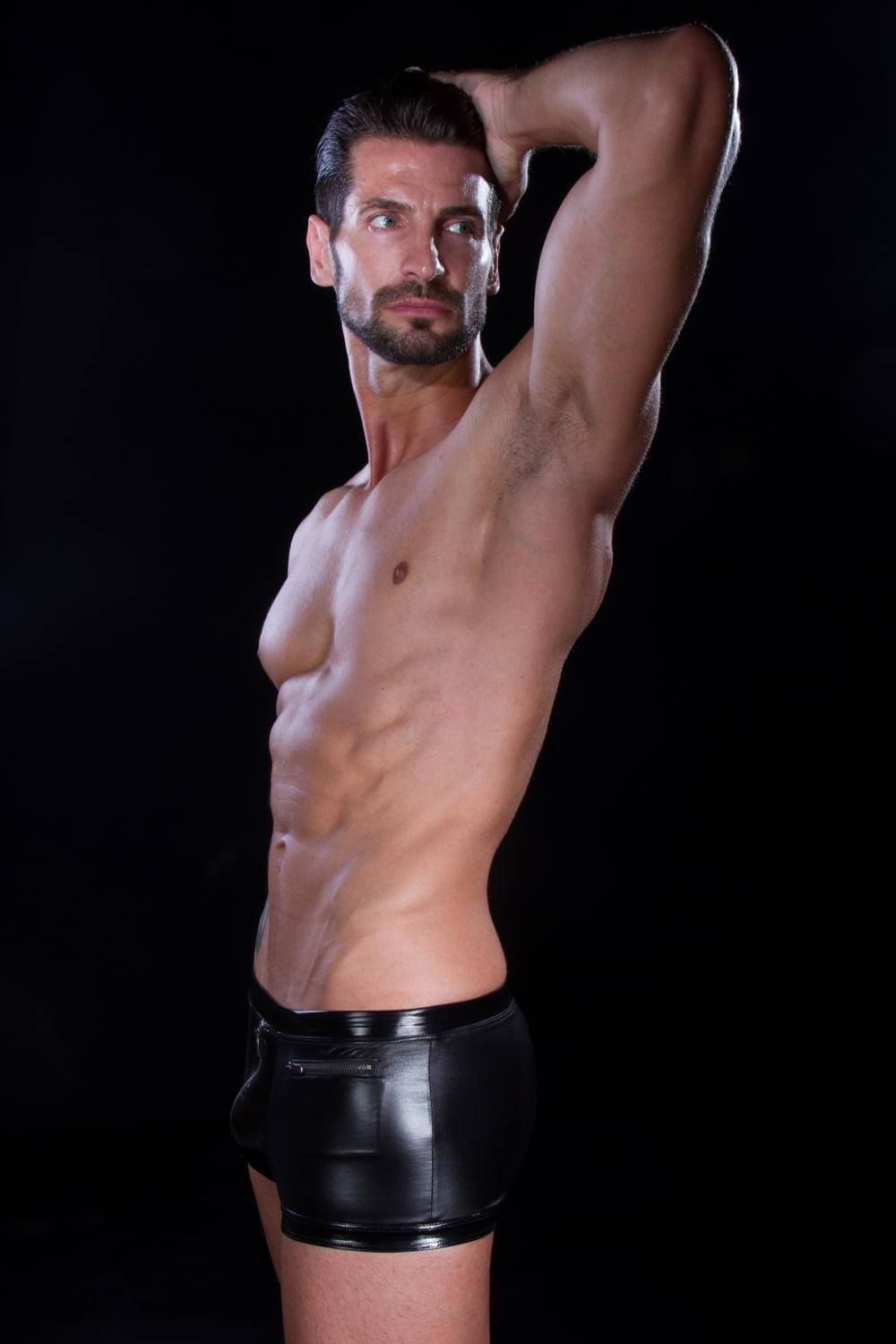 Черные боксеры от французского дизайнера Patrice Catanzaro выполнены из черного блестящего материала. Если Вы хотите приятно удивить свою возлюбленную, то подобное необычное нижнее белье идеально подойдет для такого случая. Боксеры будут отлично обтягивать ягодицы, притягивая к ним страстный взгляд Вашей избранницы. Спереди есть молния, которая не только будет очень удобна во время повседневного ношения, но и пригодится во время самых страстных моментов с Вашей партнершей. Сбоку есть небольшой кармашек, который также застегивается на молнию.