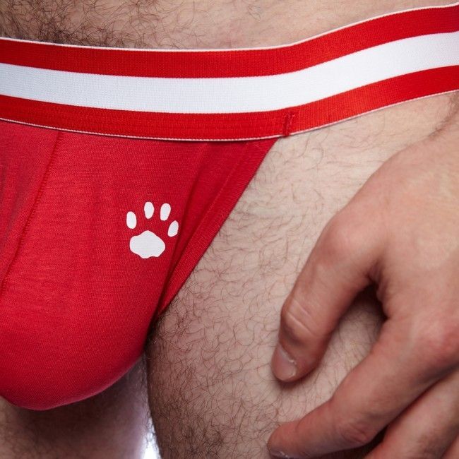 Мужские трусы-джоки от бренда Prowler сделаны из мягкого хлопка красного цвета и декорированы фирменным принтом в виде лапки. Широкая резинка с контрастной белой полоской добавит образу стильности. Трусы с таким фасоном придадут любому мужчине эротичности и сексуальности за счет открытых ягодиц и плотного облегания материала. Эластичные резинки сзади приподнимут ягодицы и сделают их более округлыми. Надеть их можно во время романтической ночи, чтобы удивить свою вторую половинку пикантным видом.