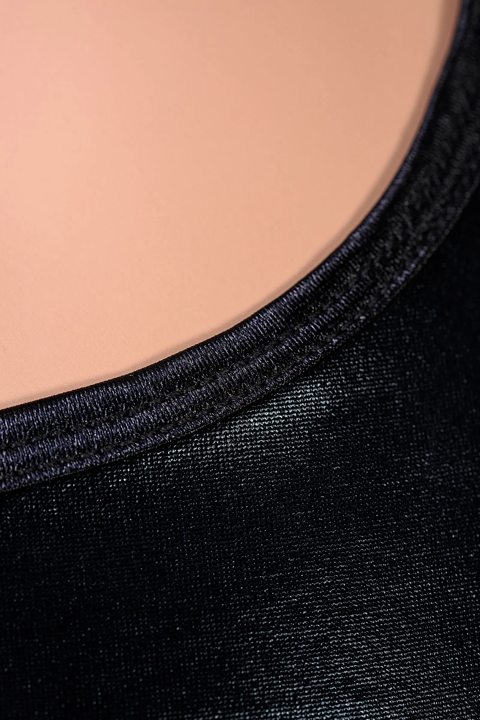 Это платье создано для ценительниц роскошных нарядов. Оно сшито из ткани с эффектом wetlook («мокрым эффектом»), которая обладает благородным блеском, приятна на ощупь и визуально стройнит. В таком платье очень комфортно соблазнять и очаровывать своим провокационно-невинным образом.