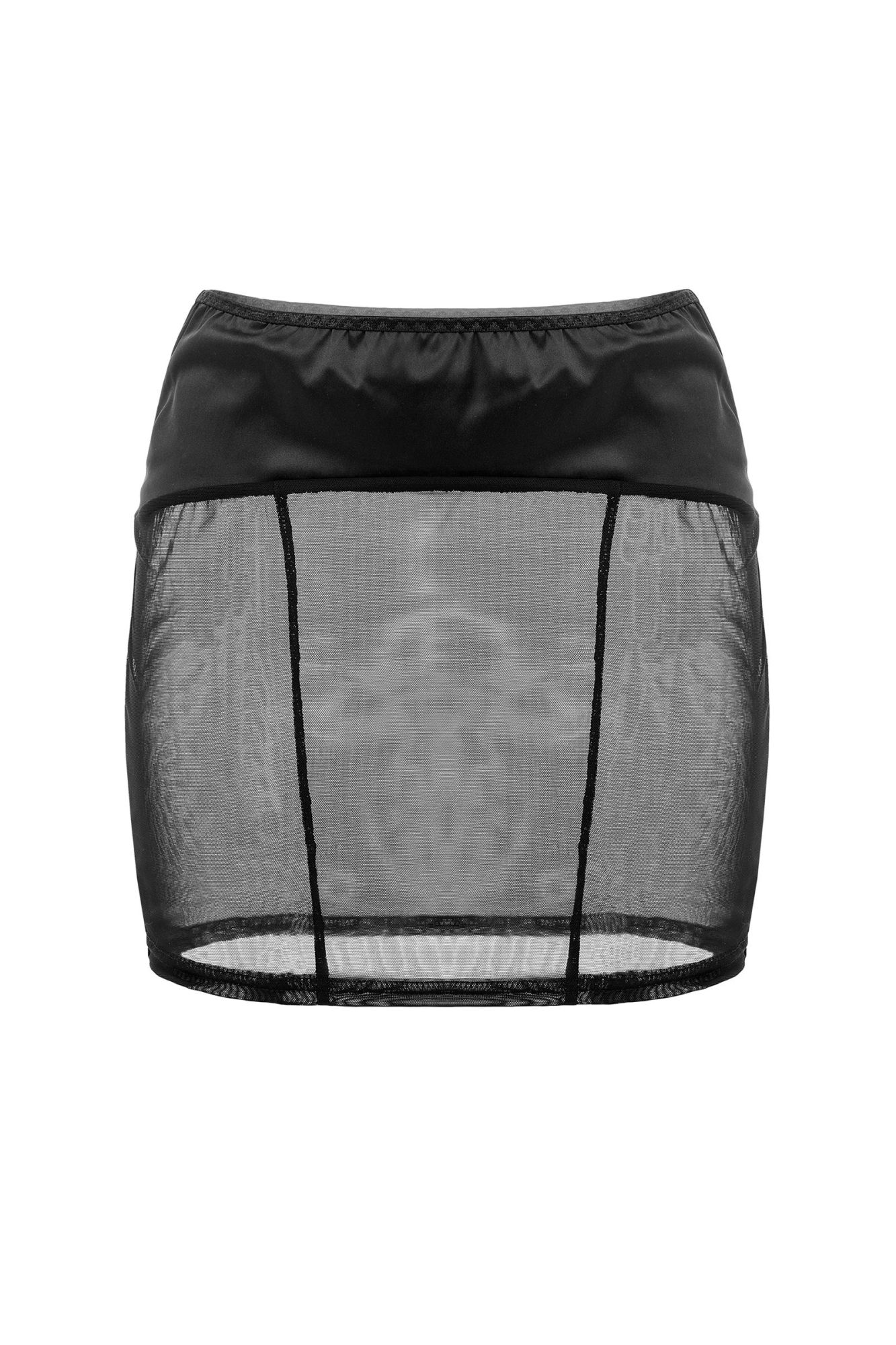 Линия провокационного эротического белья WANAME® Apparel – для женщин, которые хотят наслаждения и не скрывают этого. Юбка «И́вэнэс» (англ. Evenness – «Плавность») из тонкой прозрачной эластичной сетки и стрейч-сатина облегает бедра, ощущается невесомой, не сковывают движений, но визуально меняет силуэт. Шелковистая поверхность материала дарит приятные ощущения при прикосновении. Современные элементы дизайна тешат женское самолюбие. Матовая кокетка и аккуратный вырез сзади подчеркивают движение бедер при каждом шаге. Провокационная длина слегка прикрывает ягодицы. Интимные зоны, закрытые для прикосновений, но доступные взгляду подчеркивают чувственность образа. Модели белья Waname® Apparel эксклюзивны, разработаны и произведены в России с учетом предпочтений российских покупательниц. *На фото и видео юбка Waname® Evenness дополнена браллетом Waname® Delicacy.