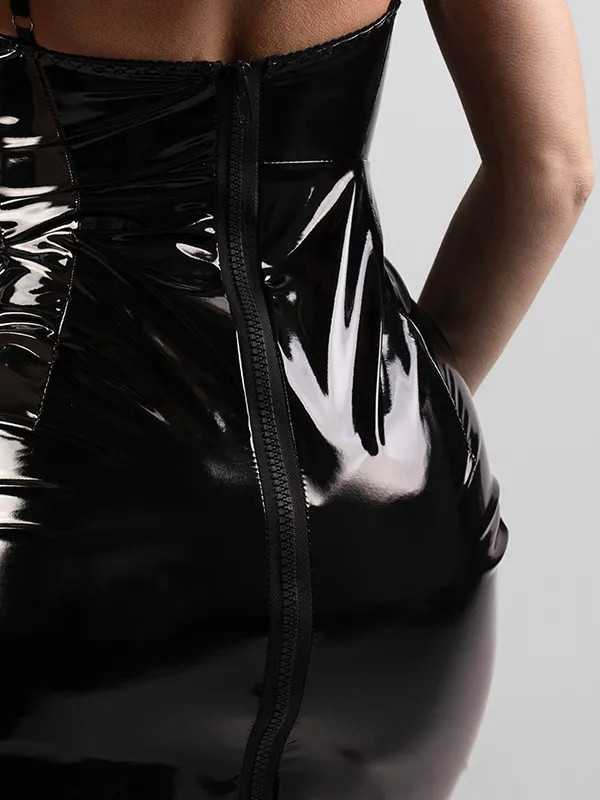 Платье PinkRabbit из лакированной кожи красиво облегает фигуру и блестит при каждом движении вашего тела. Регулируемая длина бретелей обеспечивает идеальную посадку. Это платье - ваш VIP-пропуск на любую вечеринку! Сочетая его с различными аксессуарами, вы можете дополнить и обыграть образ по своему, и каждый раз выглядеть ослепительно.