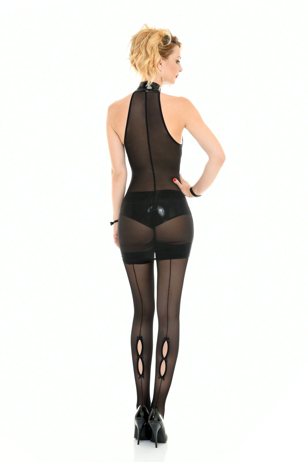 Сексуальное и откровенное платье Beatrice из коллекции Tome 15 от французского модельера Patrice Catanzaro выполнено из плотного блестящего материала, напоминающего кожу, и прозрачной микросетки. Платье без рукавов, с длинной молнии спереди, идущей от высокого воротника до подола. У молнии 2 ползунка, поэтому Вам будет удобно регулировать длину вырезов сверху и снизу. Сзади и по бокам платье выполнено из прозрачного материала, который не сможет скрыть фигуры от горящего желанием взгляда Вашего партнера.