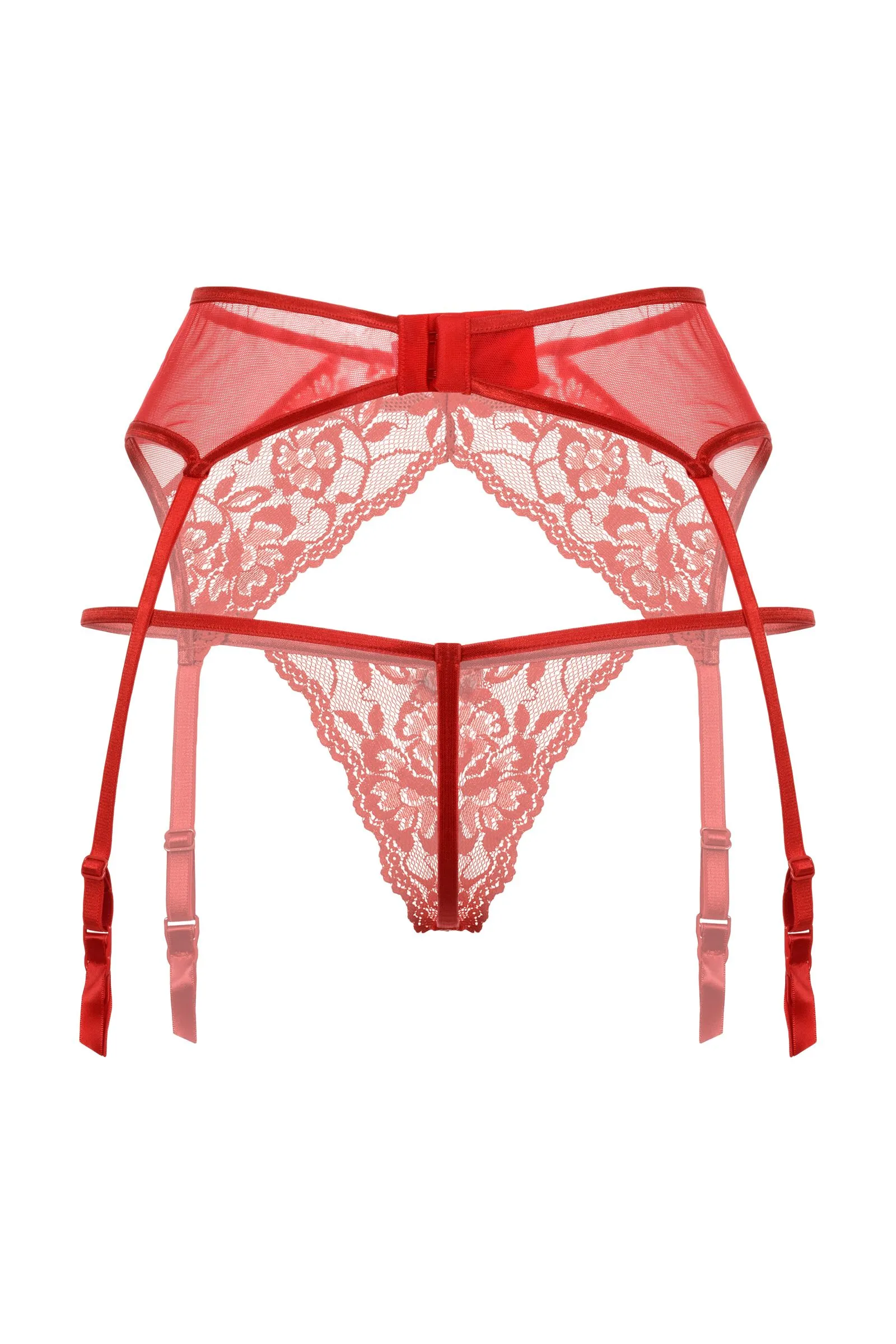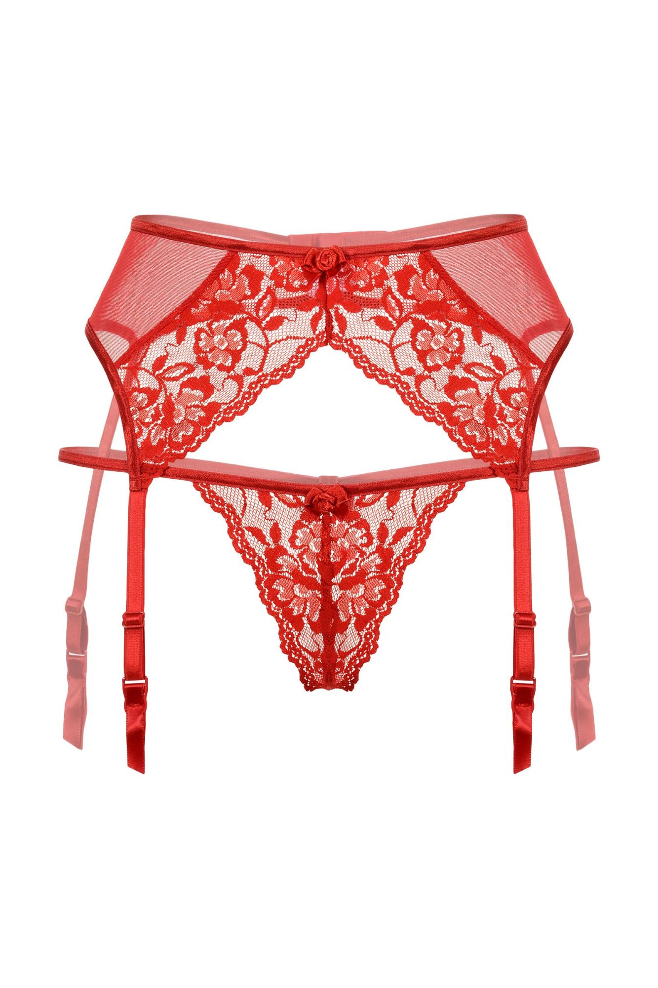 —Пояс для чулок и стринги кружевные SoftLine Collection, красный, M/L