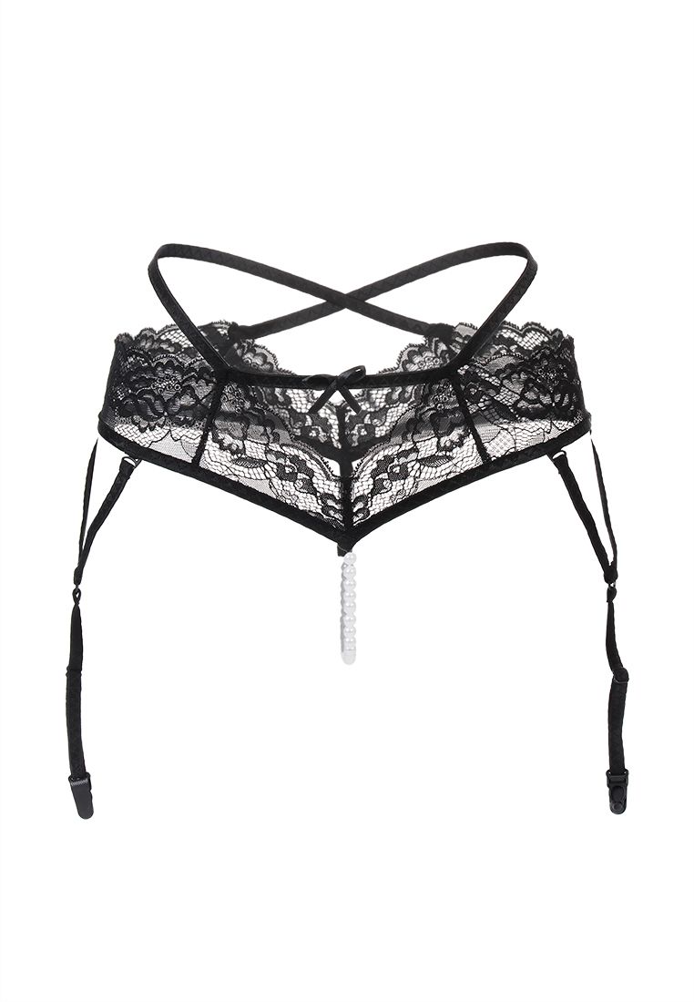 —Эротические трусики-пояс с жемчужной нитью Erolanta Wendy кружевные, черный 50-52