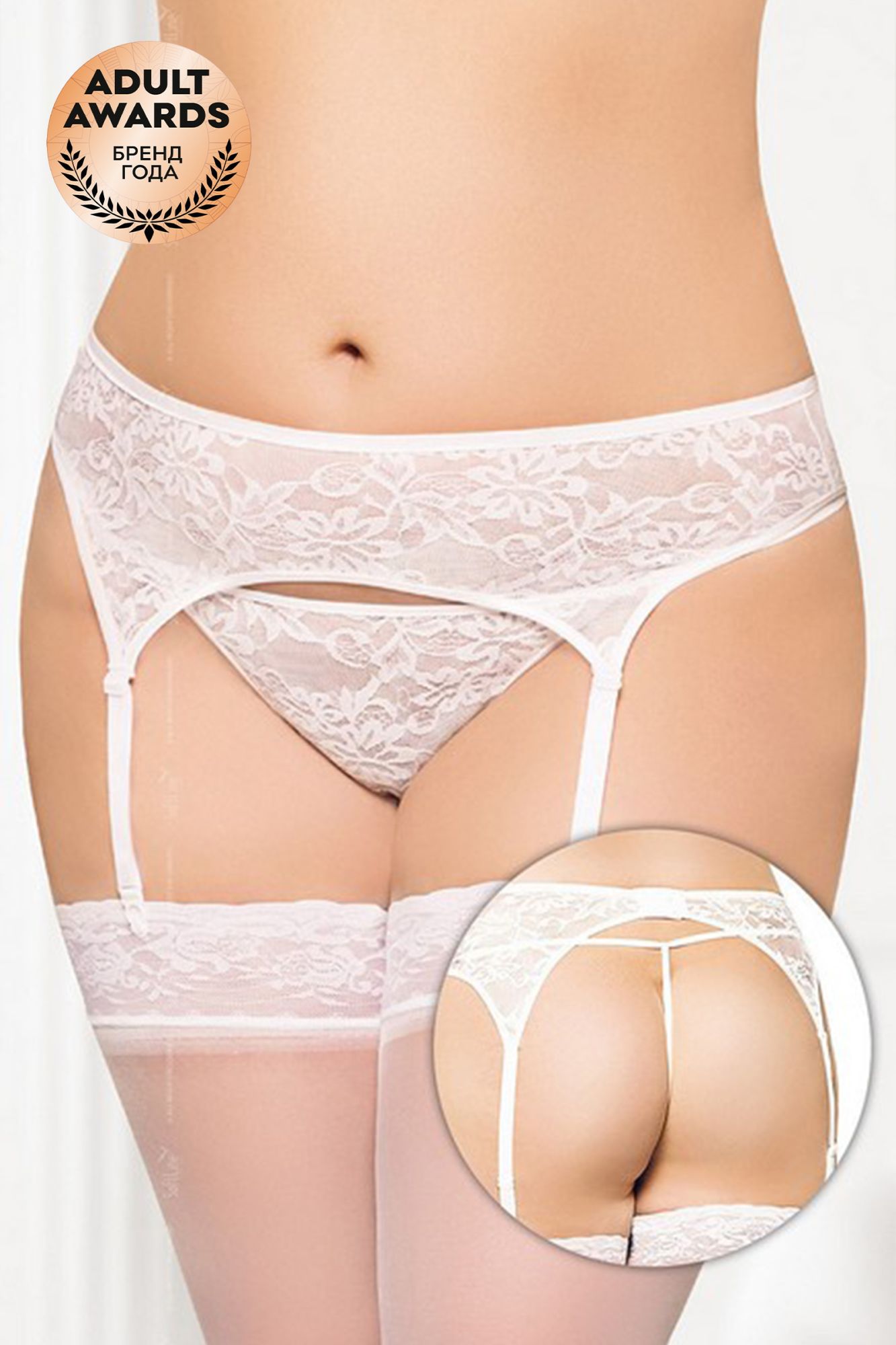 —Пояс для чулок и стринги кружевные SoftLine Collection, белый, XXXL