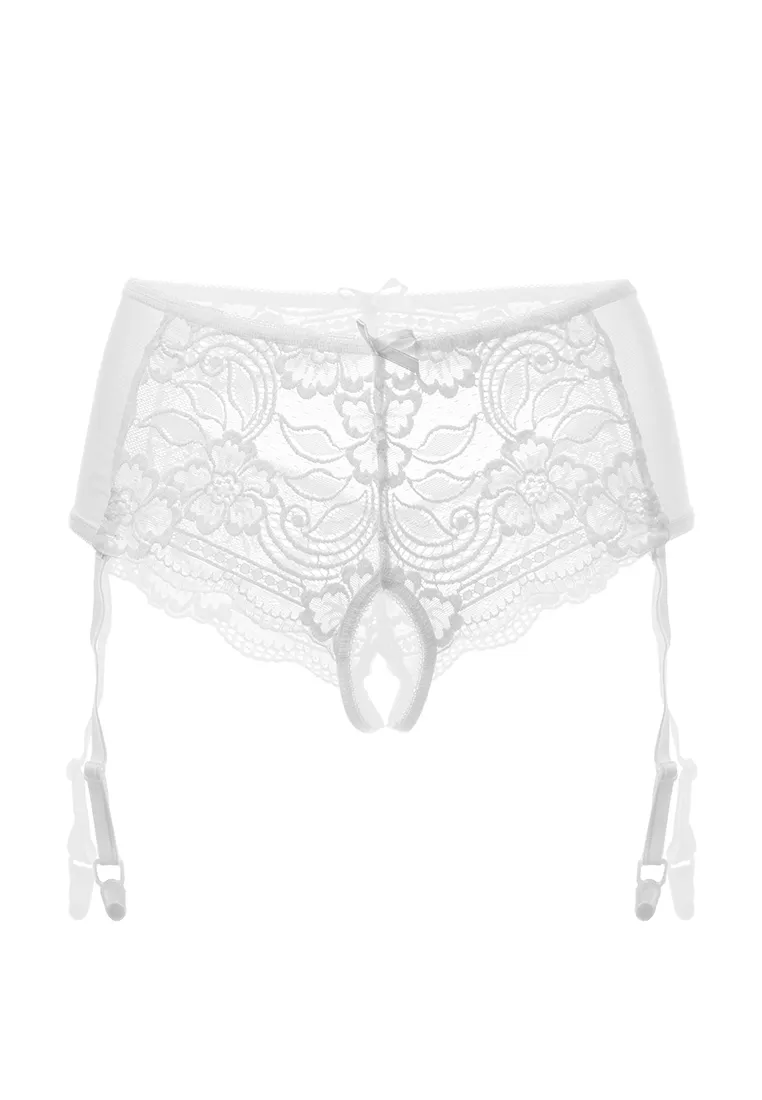 Эротические трусики-пояс Erolanta® Sheila, эластичные, из стрейч-сетки со сложными кружевными вставками, с вырезом сзади, без боковых швов, с атласными бантиками. Съемные регулируемые пажи. *Допускается замена кружева на аналогичное. Чулки в комплект не входят. На видео трусики Erolanta® Sheila дополнены идеально сочетающимся бралетт Erolanta® Nelly.
