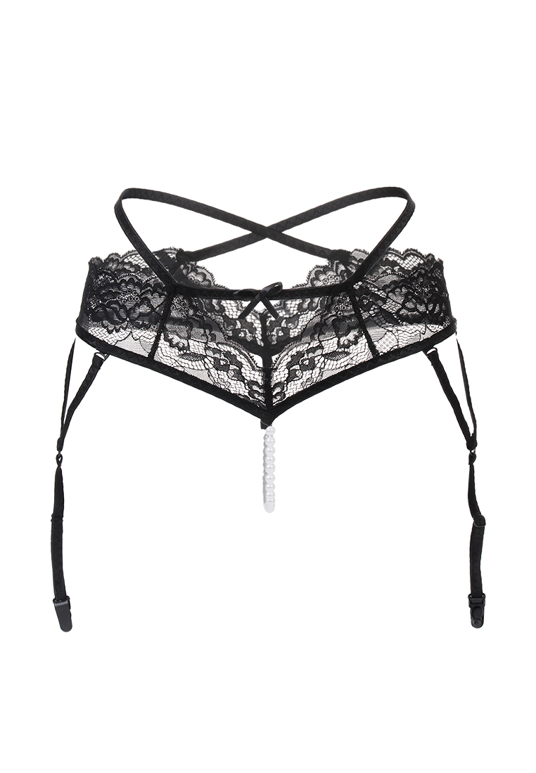 Эротические трусики-пояс с жемчужной нитью Erolanta Wendy кружевные, черный (42-44) в пакете