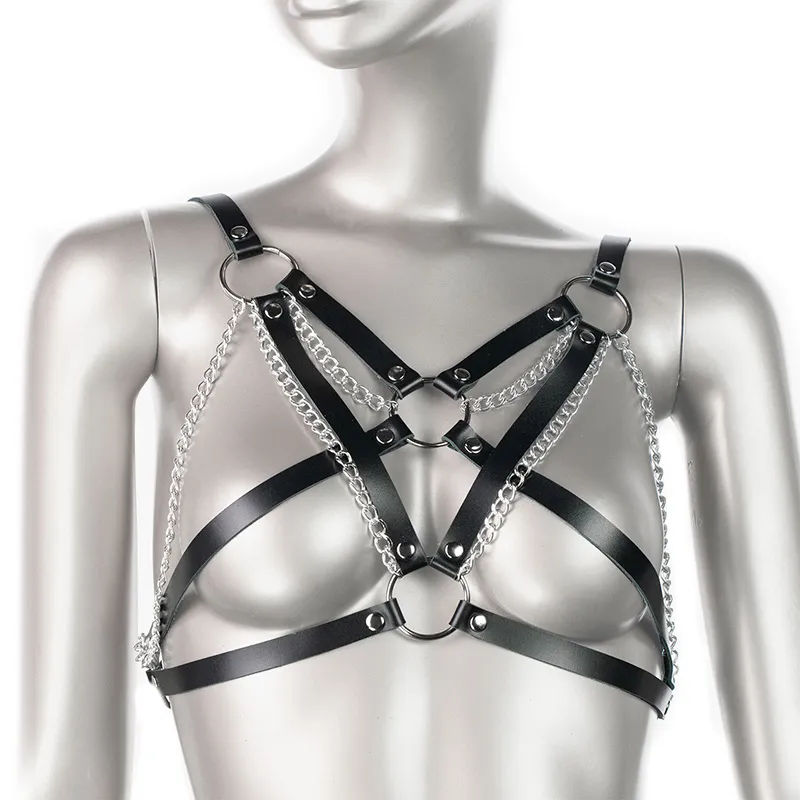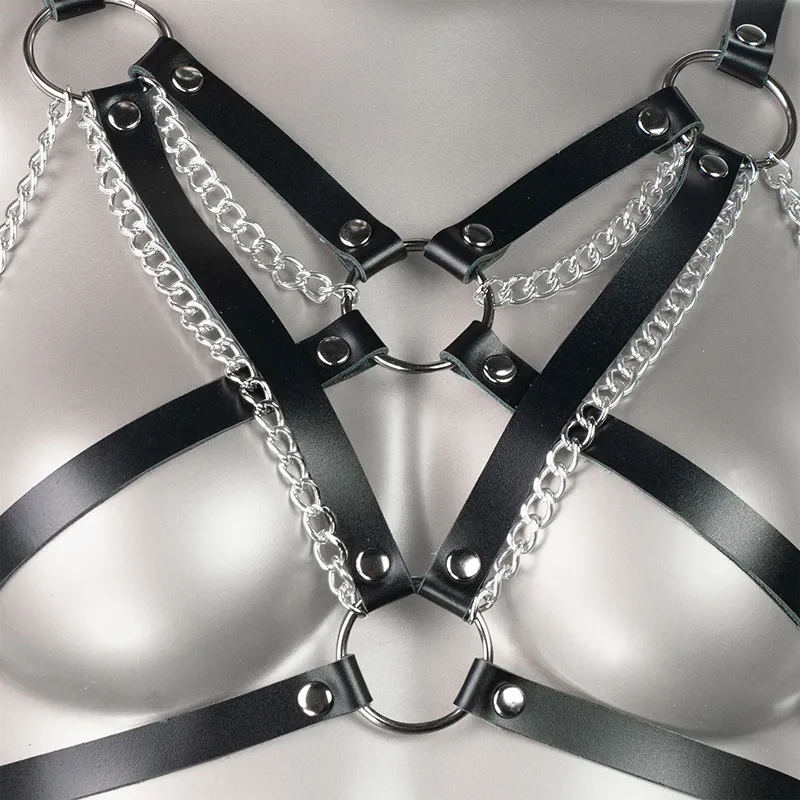 Женская портупея "Эмили" от компании Passion Belts прекрасно дополнит любой образ, которому хочется придать особый стиль и воинственность. Аксессуар будет гармонично смотреться с различными стилями одежды, выразительно подчеркивая Вашу индивидуальность. Портупея создана из нескольких ремней, соединенных между собой при помощи металлических колец. Также она декорирована тонкими цепочками, которые будут соблазнительно обхватывать бюст.