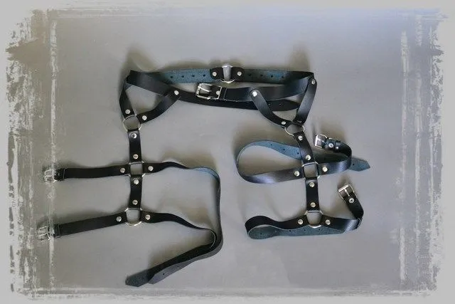 Гартеры помогут Вам в создании неповторимого образа для любовной игры. Подчеркните ими свой дерзкий стиль, пусть Ваш партнер будет поражен Вашим эффектным видом! Гартеры выполнены из натуральной кожи черного цвета. Их можно носить на поясе и на талии, размер регулируется.