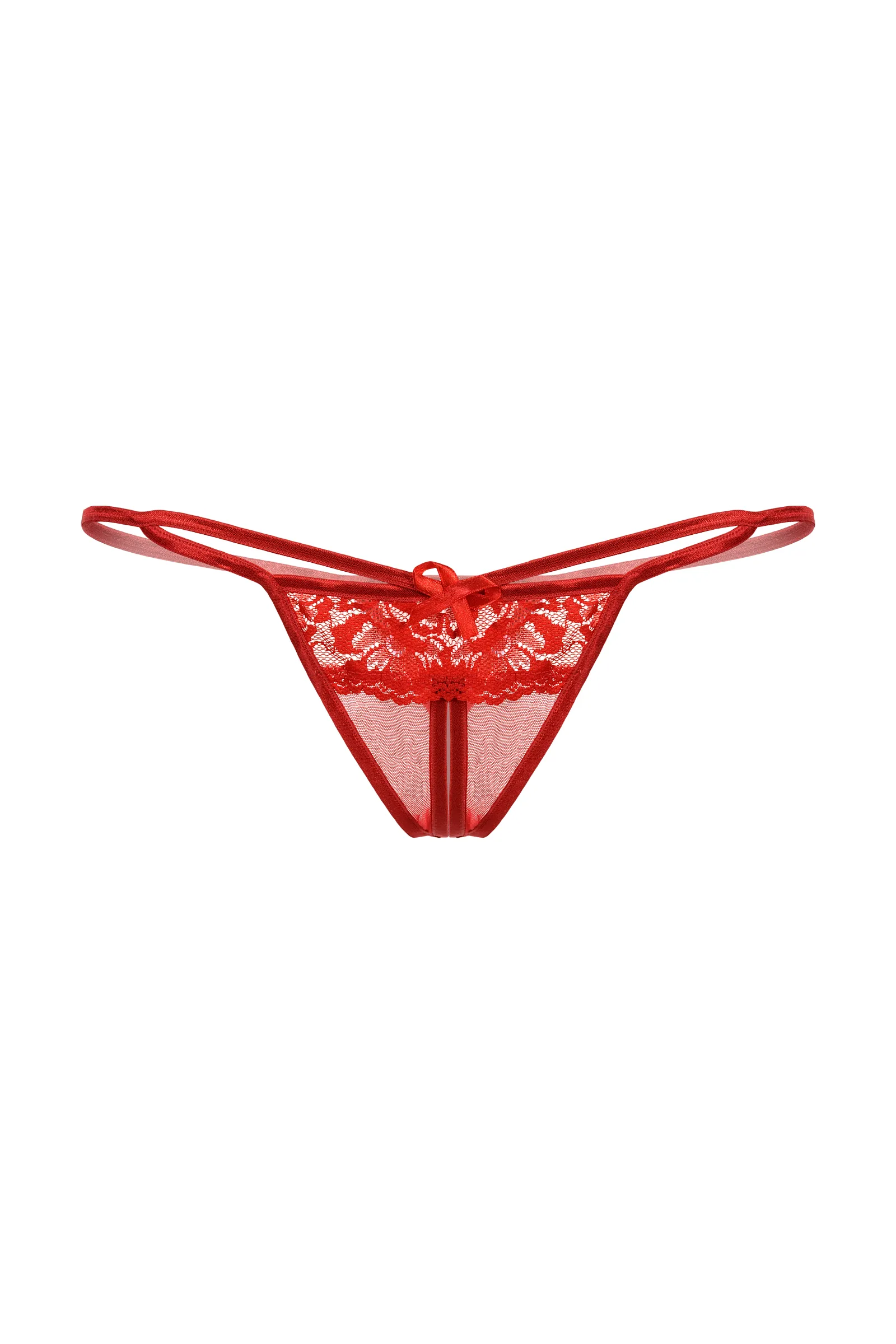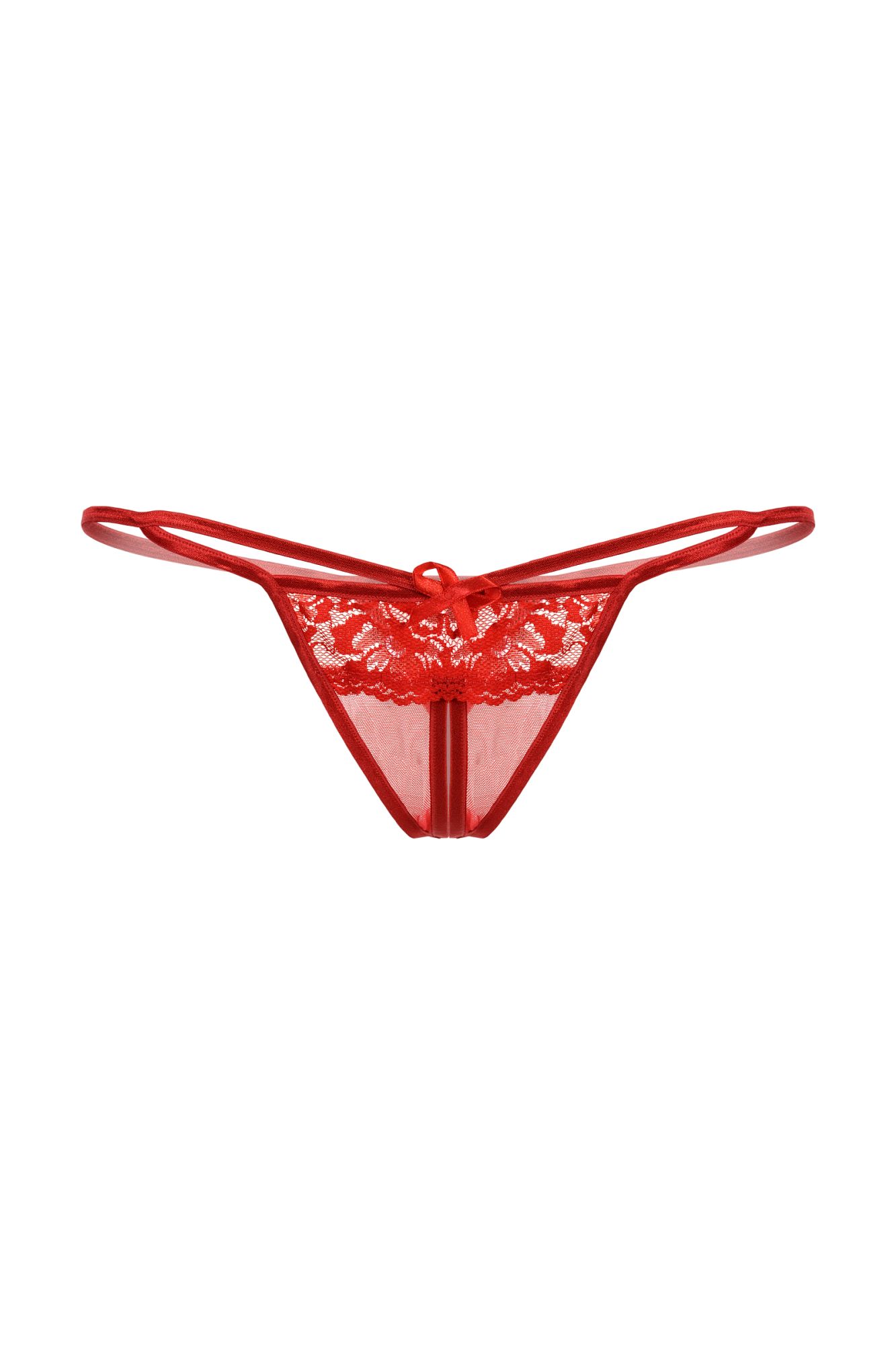 Кружевные Т-стринги с открытым доступом. Спереди декорированы кокетливым бантиком.