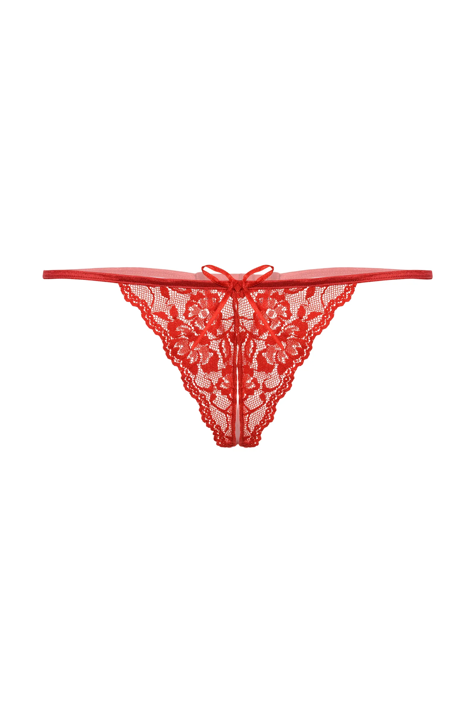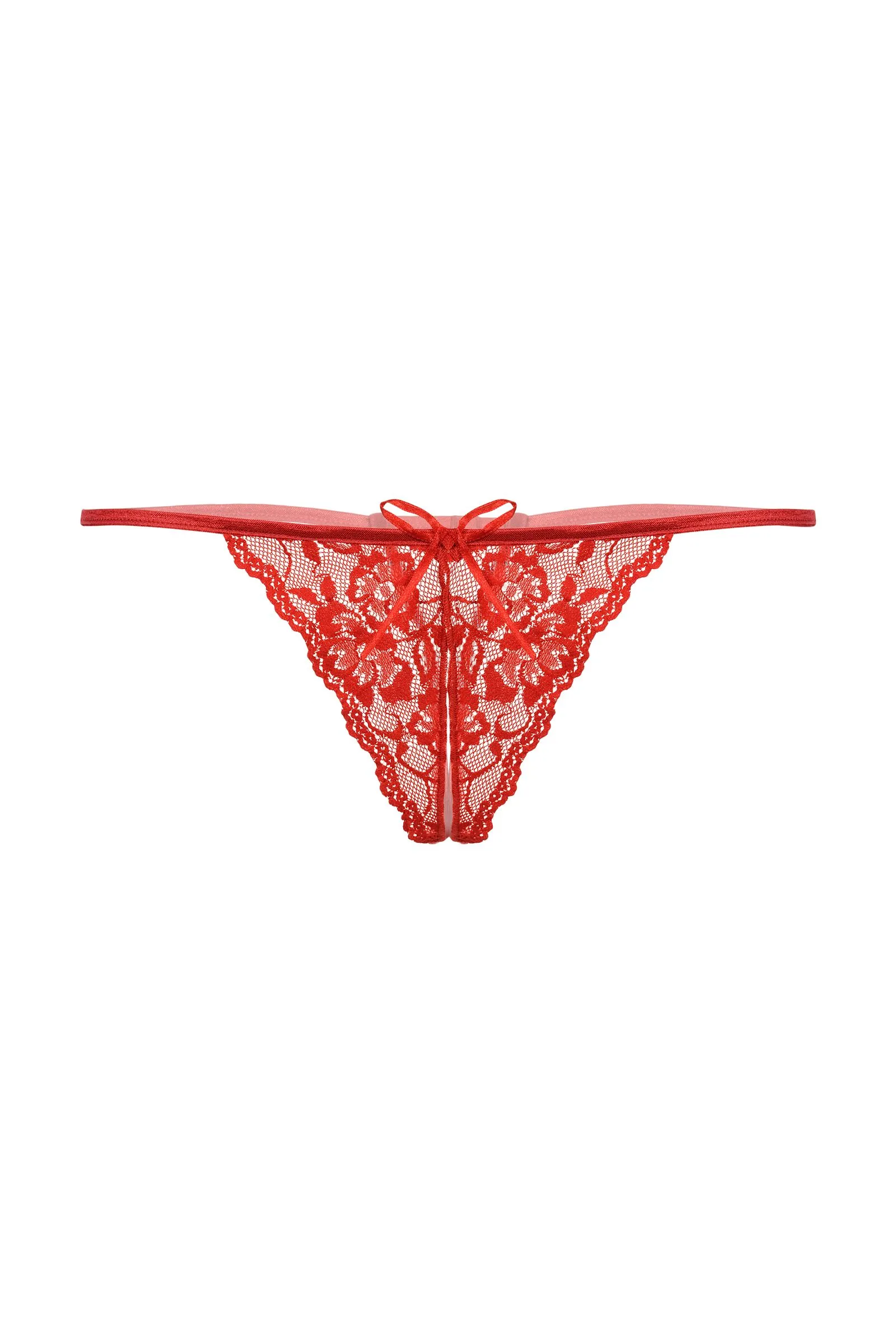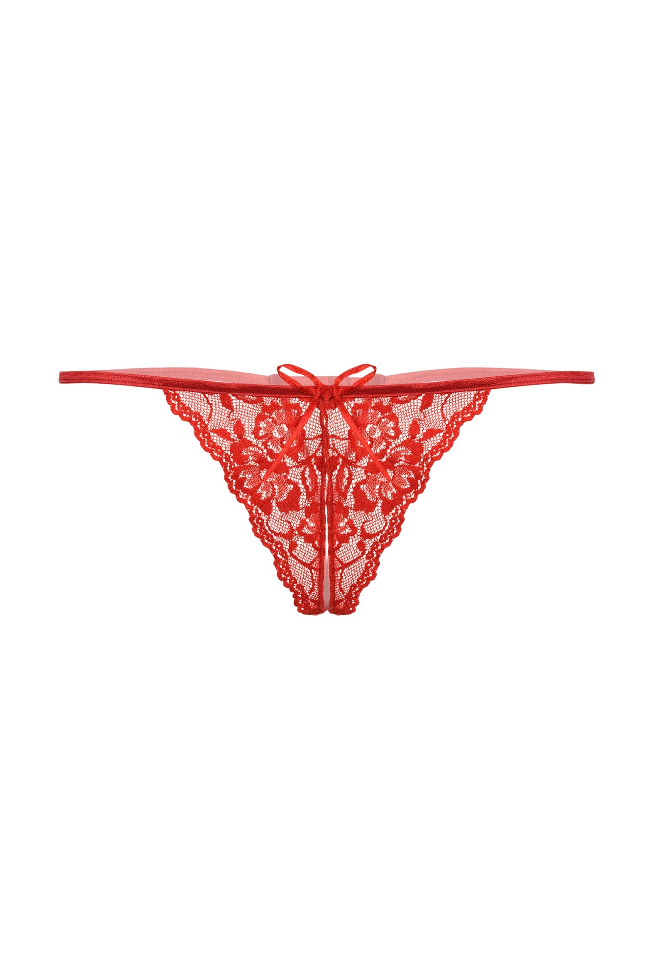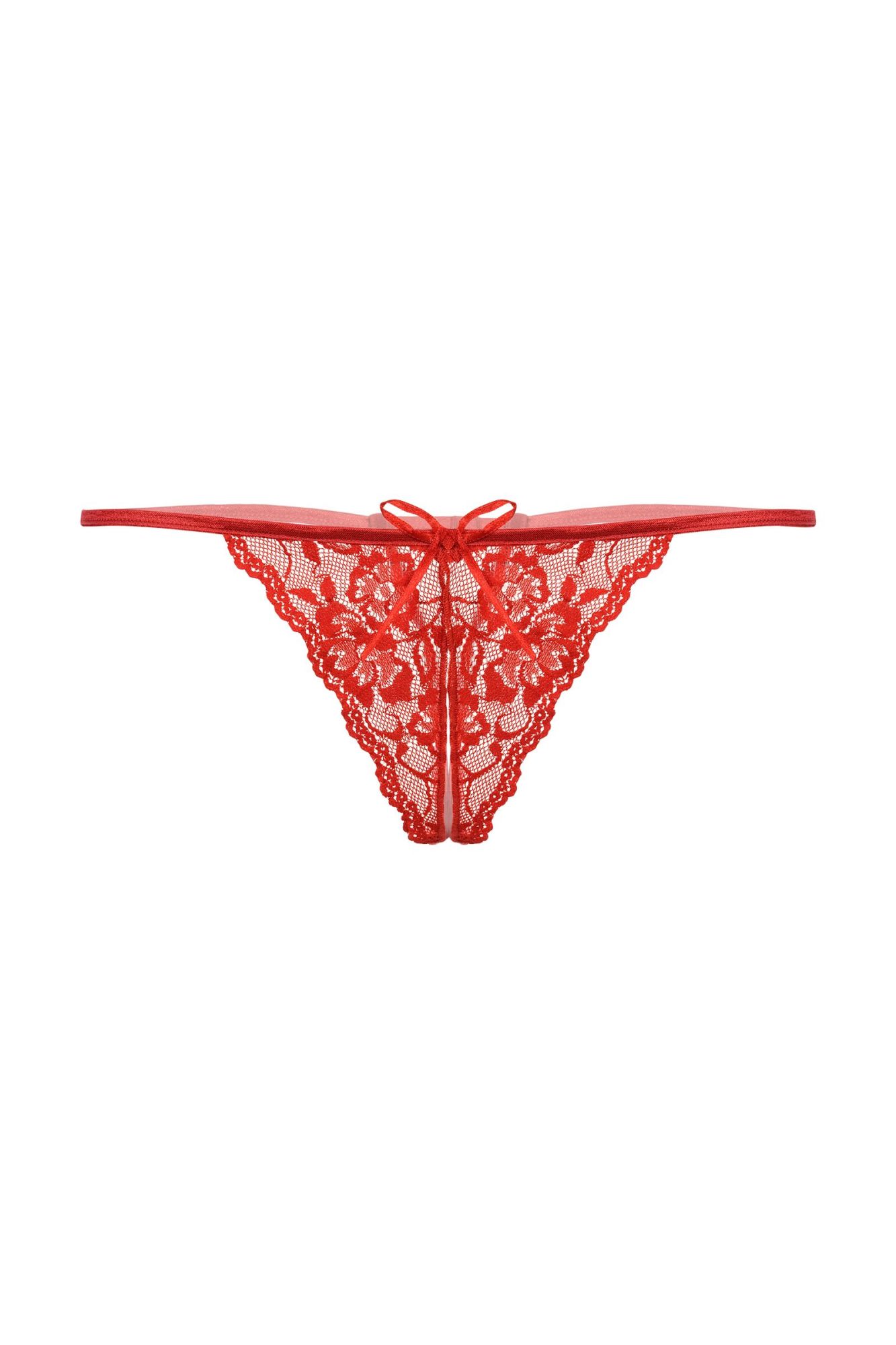 Кружевные Т-стринги с открытым доступом. Спереди декорированы кокетливым бантиком.