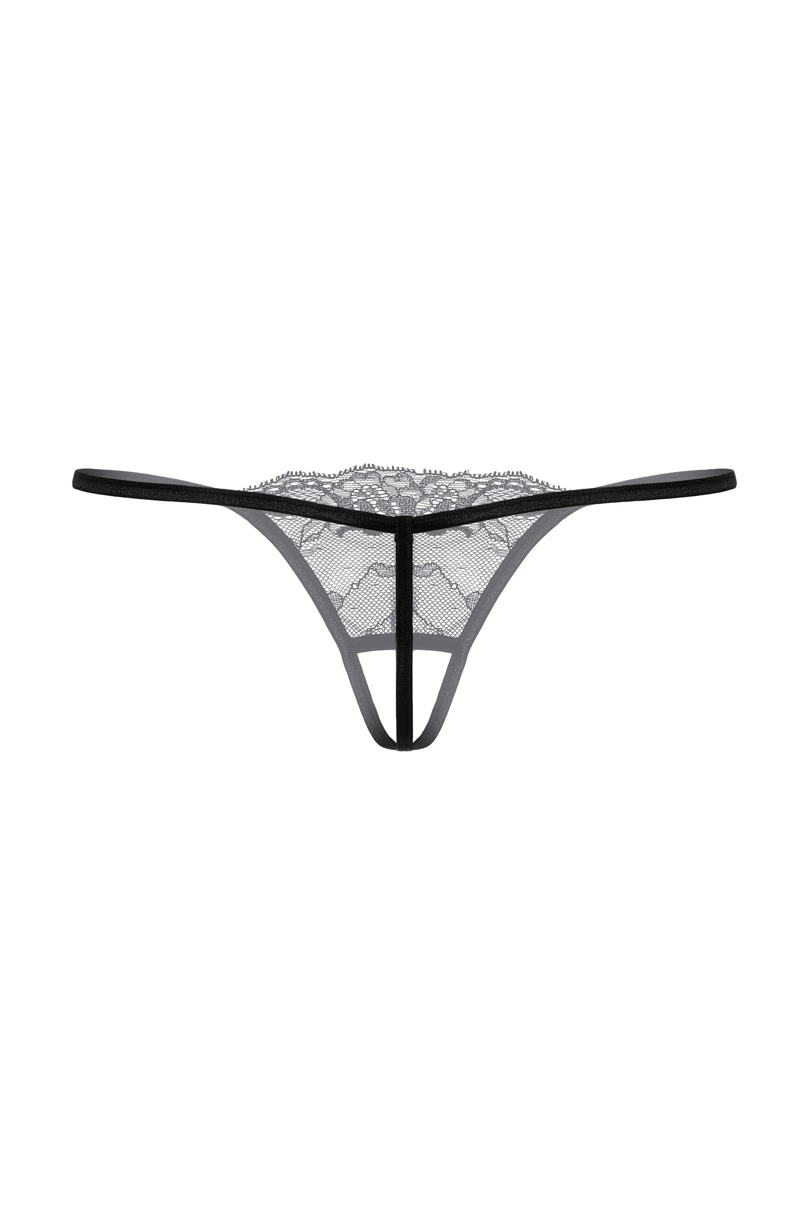 Т-стринги кружевные с открытым доступом. Спереди декорированы украшением со стразами.