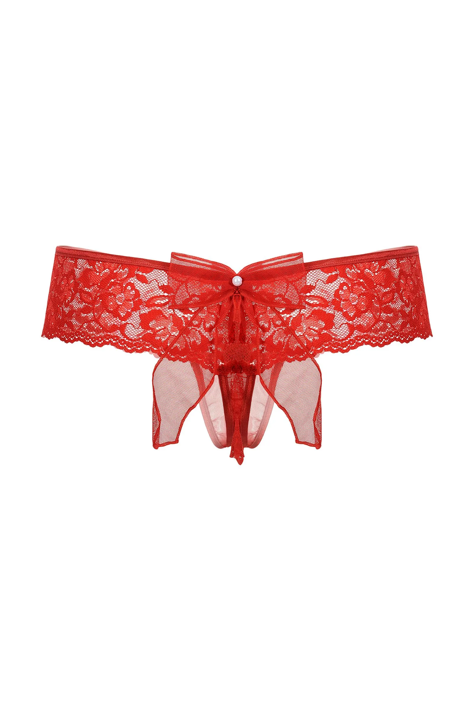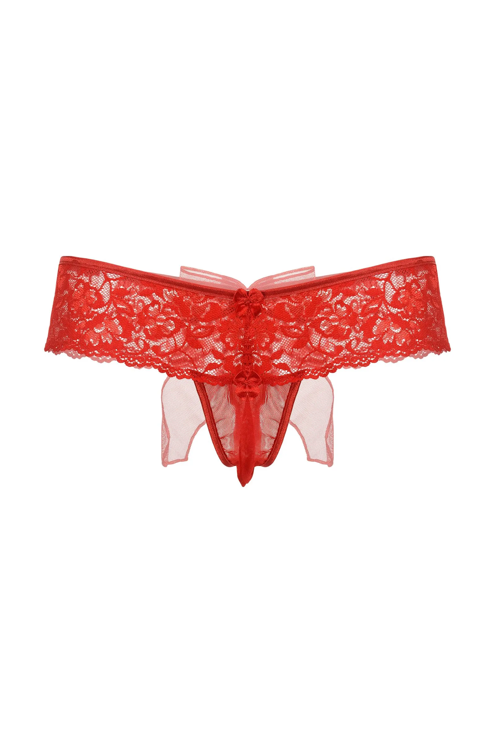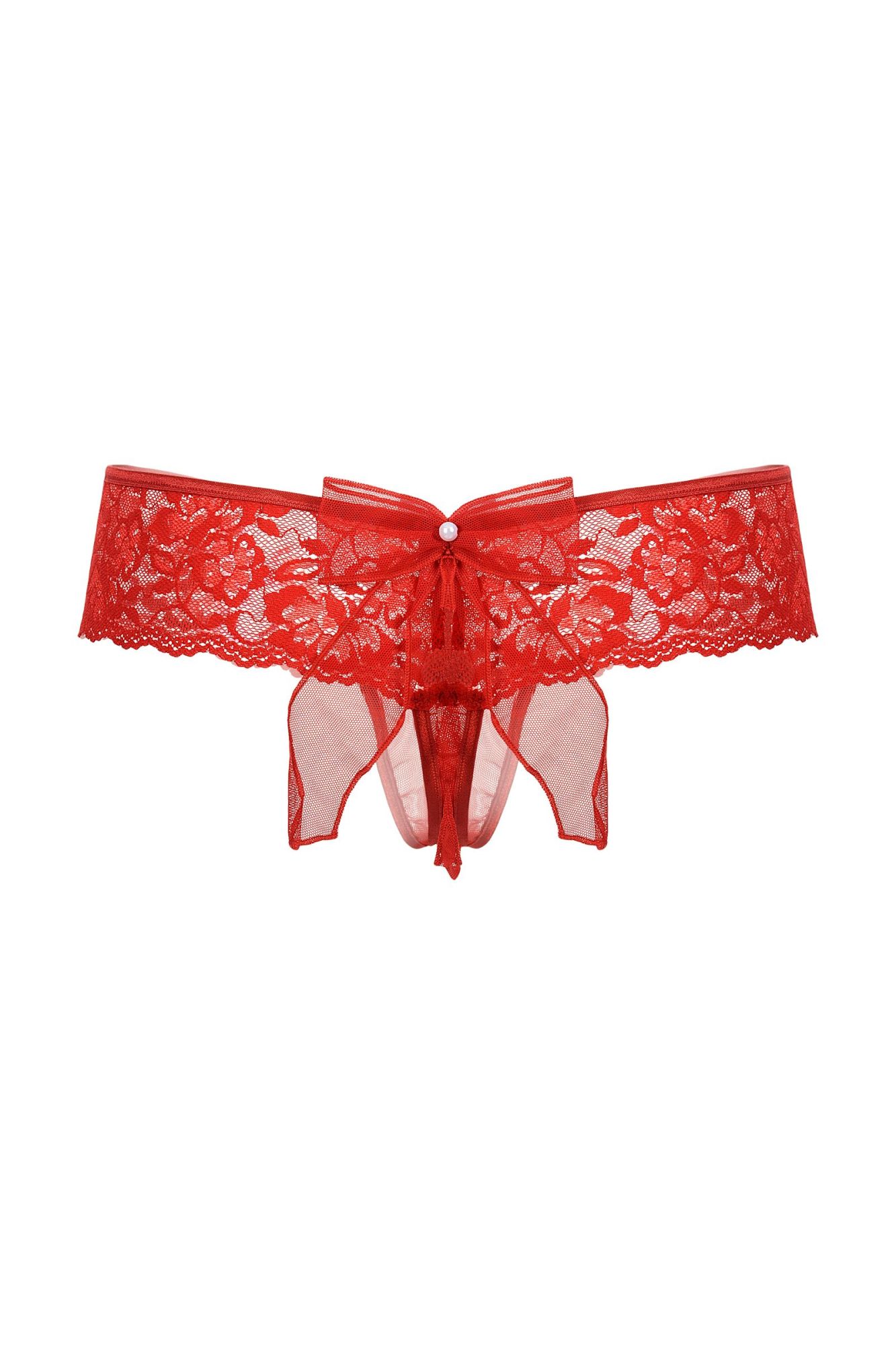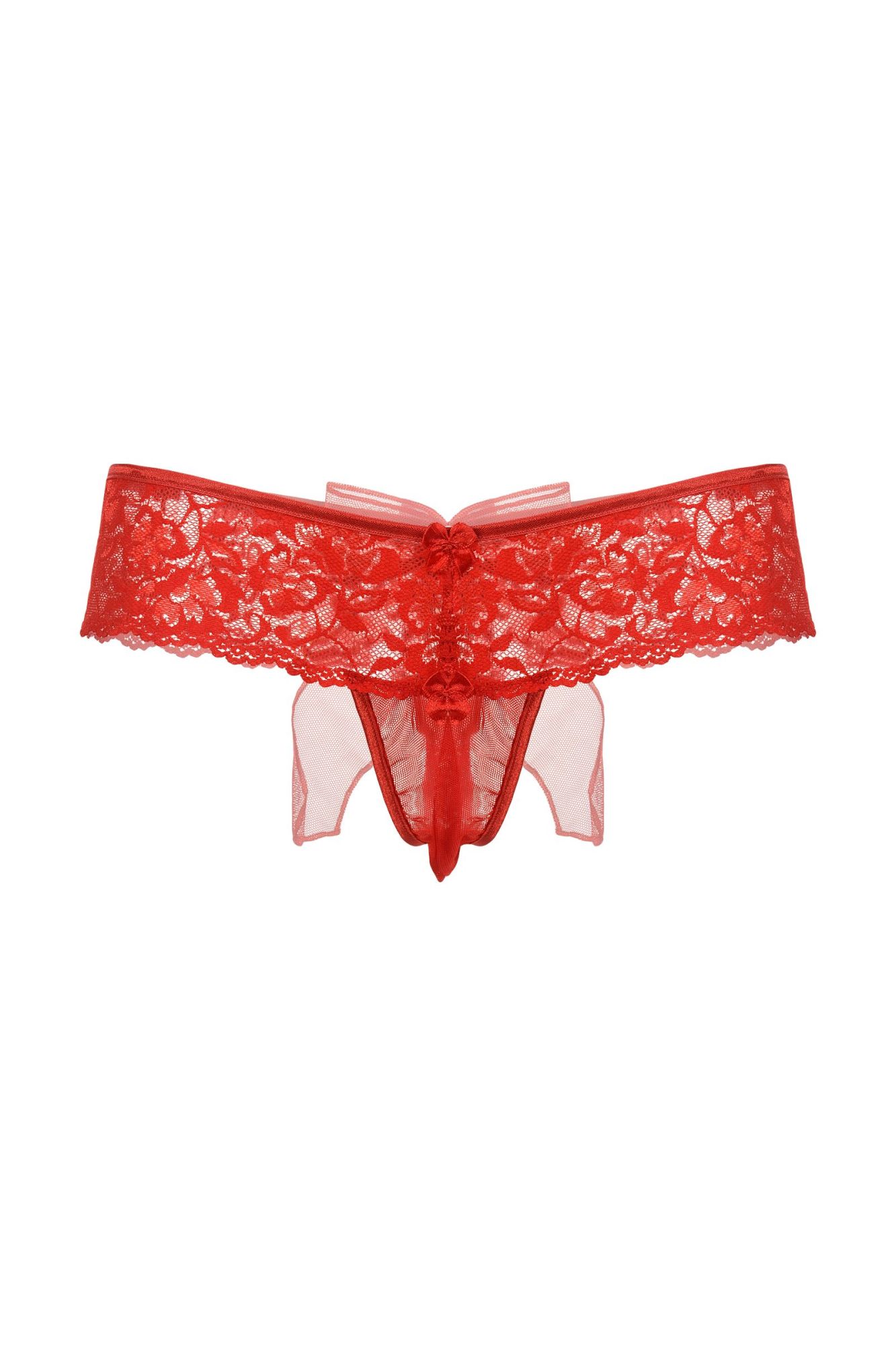 —Шортики с бантиком открытые кружевные SoftLine Collection, красный, S/M