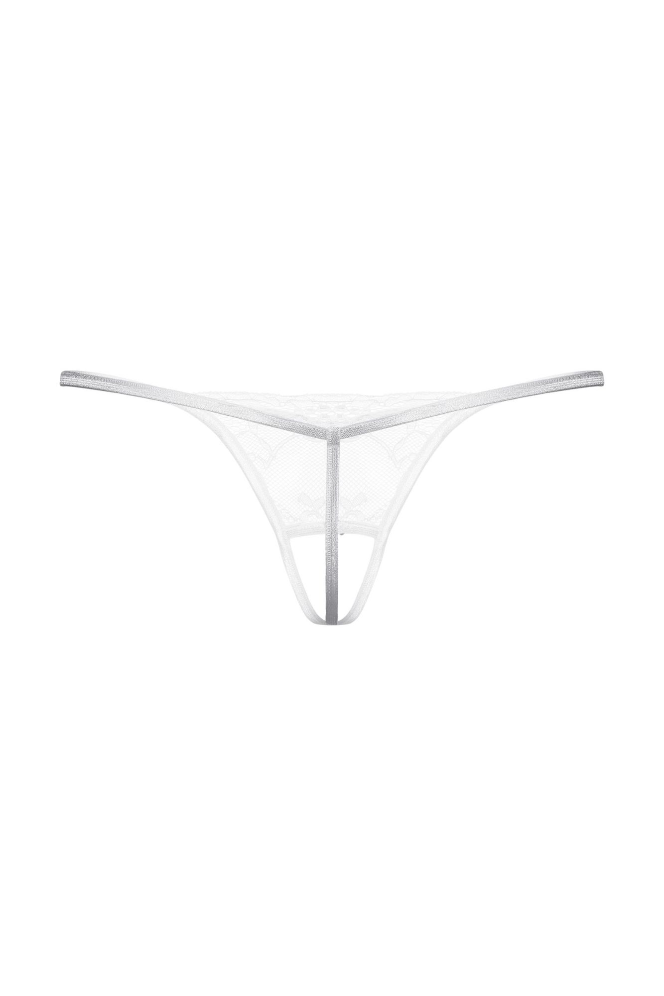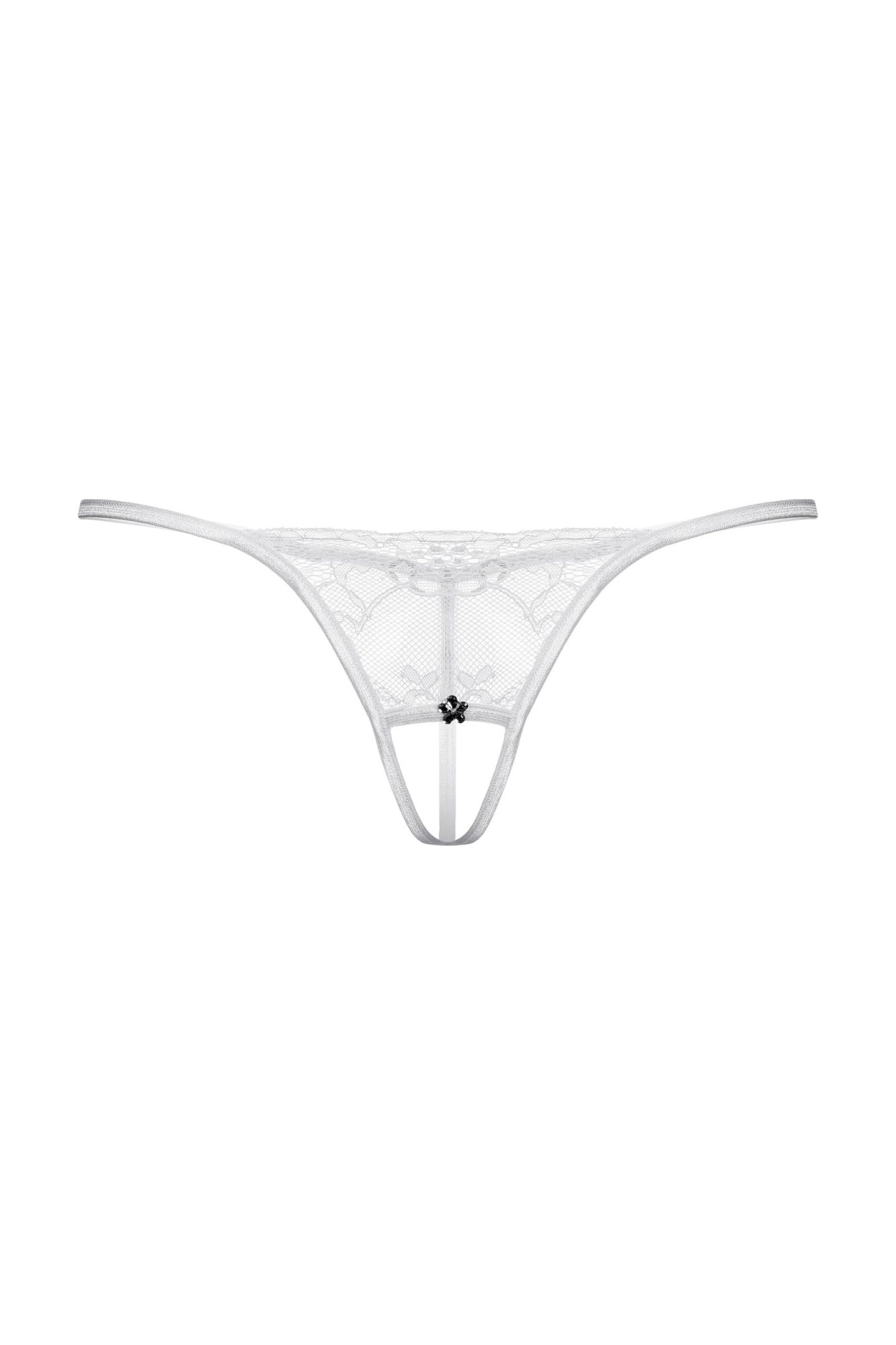 Т-стринги кружевные с открытым доступом. Спереди декорированы украшением со стразами.