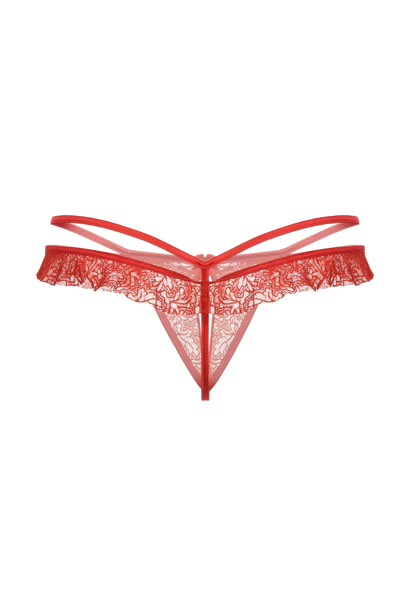 Стринги открытые с оборками красные-S/M