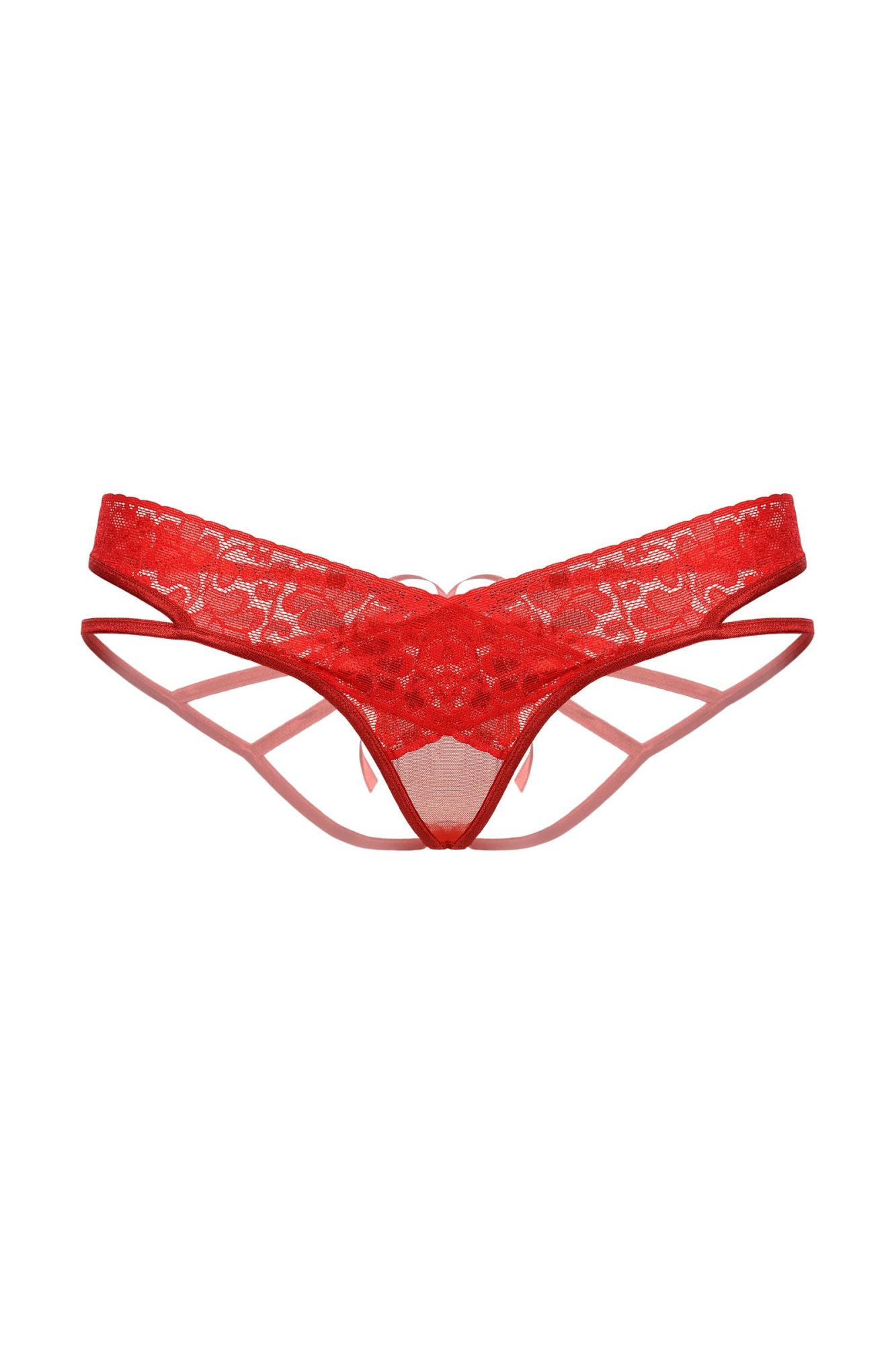 Трусы кружевные с доступом с углубленным верхним краем. Сзади трусы украшены оригинальным сочетанием кружева, тесьмы и декоративным бантиком.