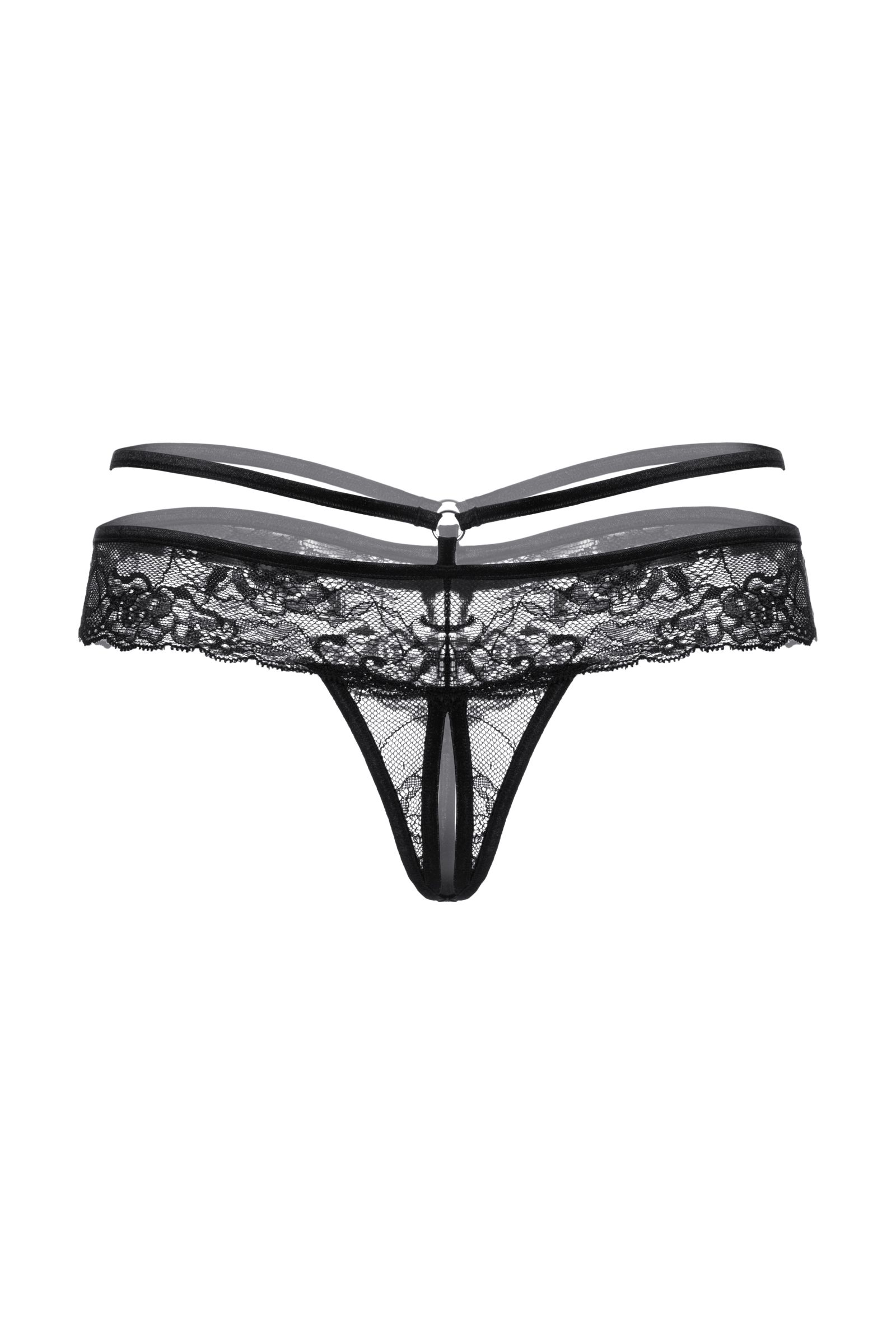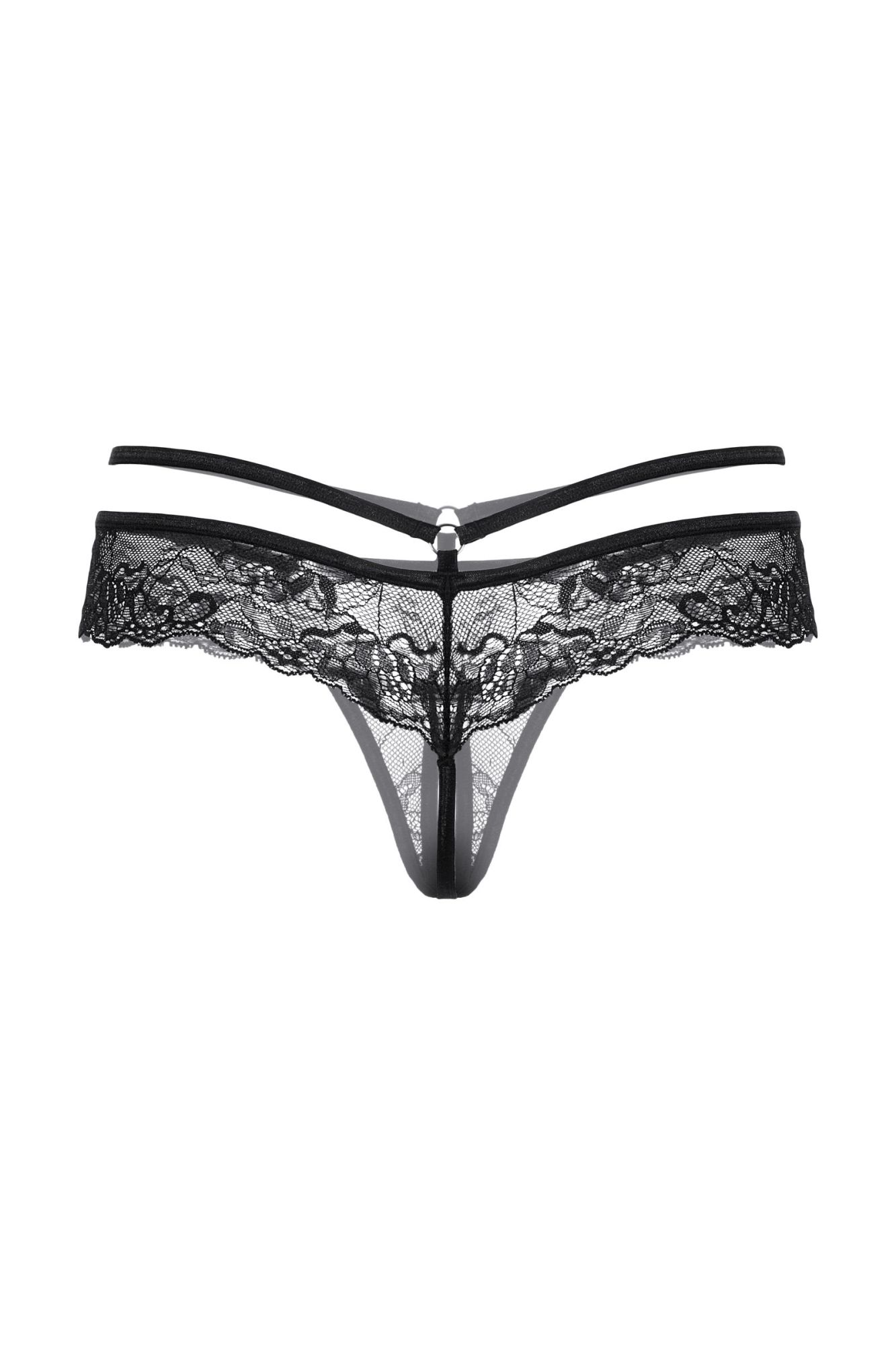 Трусики кружевные с открытым доступом выполнены из роскошного кружева. Тонкая резиночка подчеркивает соблазнительную линию бедер. Спереди декорированы изящным колечком.