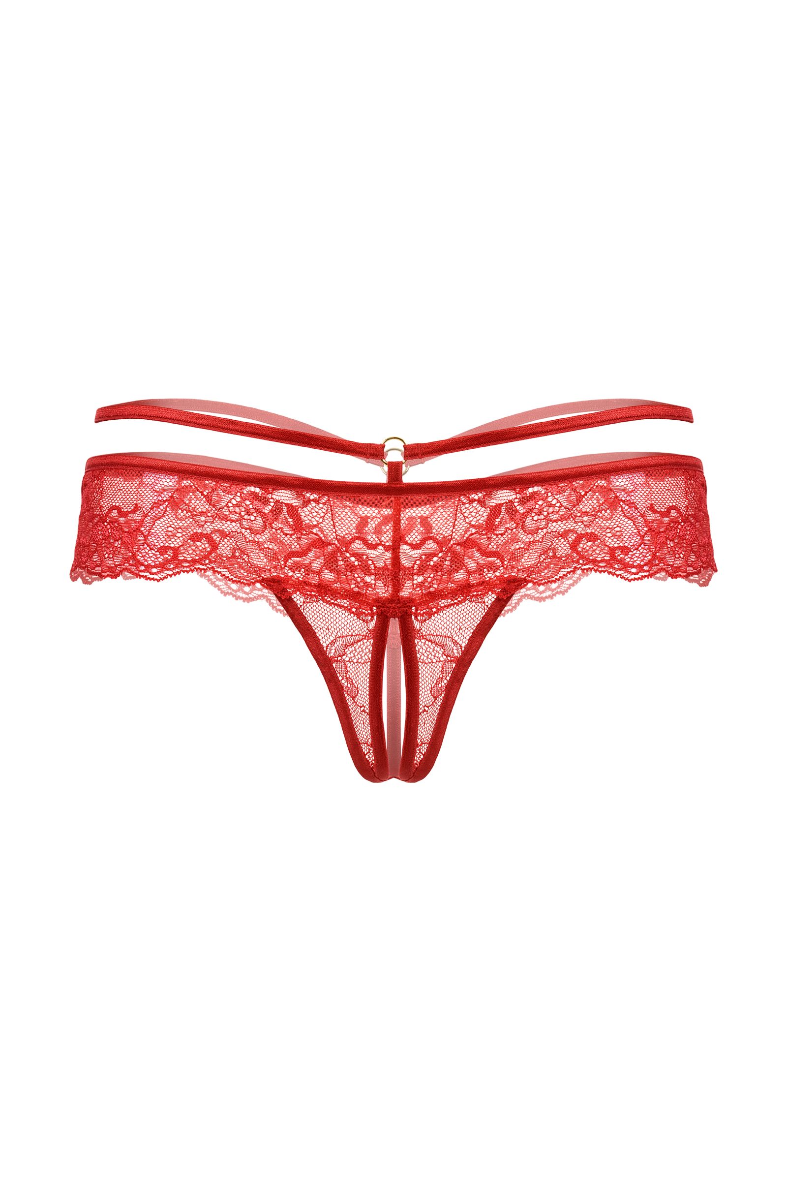 Трусики кружевные с открытым доступом выполнены из роскошного кружева. Тонкая резиночка подчеркивает соблазнительную линию бедер. Спереди декорированы изящным колечком.
