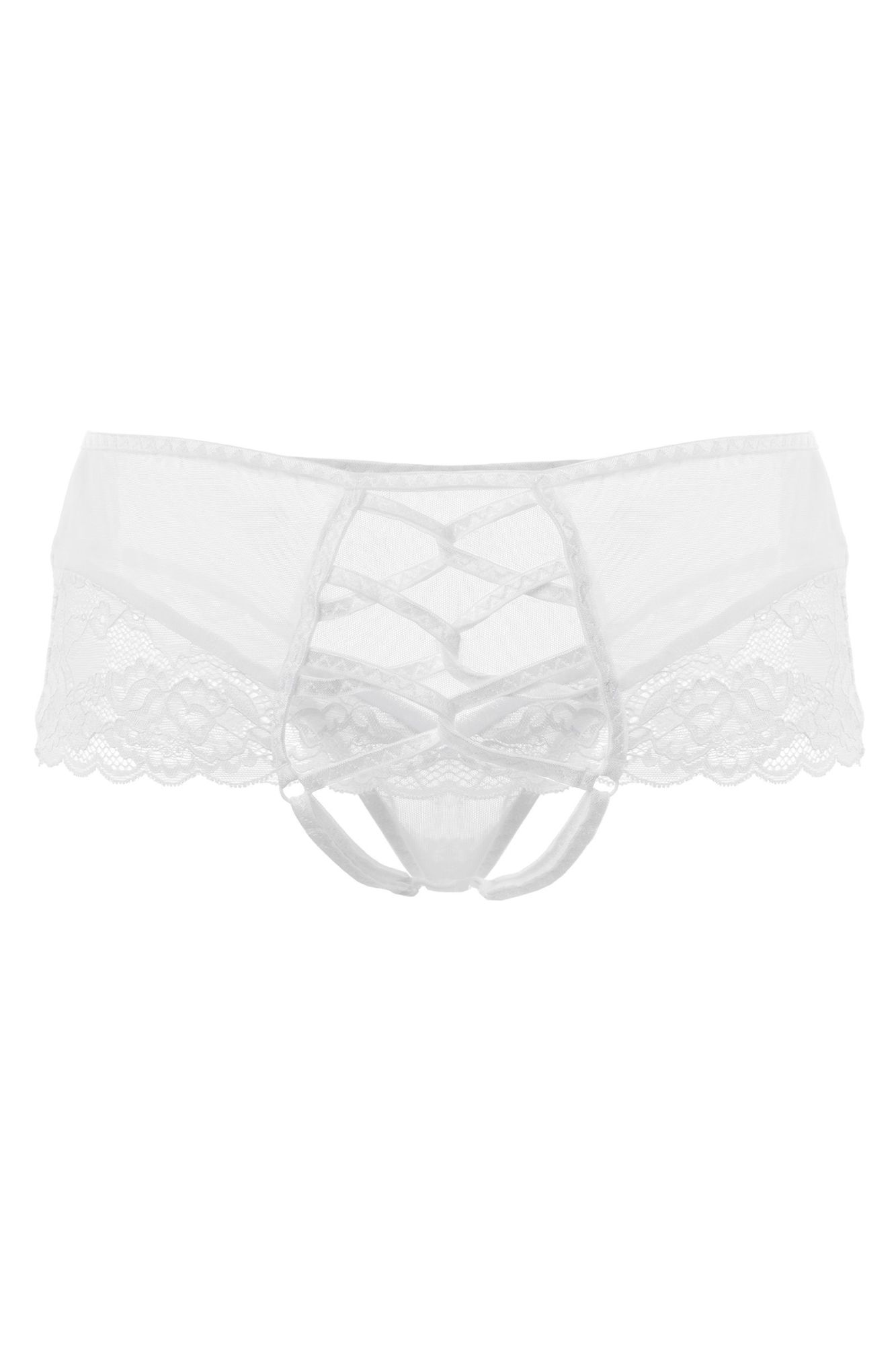 Яркое сочетание изысканного кружева и смелой шнуровки делает эротические трусики Cheryl от Erolanta® незаменимым атрибутом интригующего образа. Эластичная сетка, дополненная вставками из нежного кружева, соблазнительно облегает бедра и расставляет на них аппетитные акценты. Эффектная шнуровка пробуждает смелые фантазии. Миниатюрные кольца и регуляторы на внутренних перемычках обеспечивают комфортную посадку. А дизайн доступа к интимной зоне позволяет наслаждаться игрой, не снимая при этом трусики. Почувствуйте себя по-настоящему желанной с трусиками Cheryl от Erolanta®. *Допускается замена кружева на аналогичное. На видео трусики Erolanta® Cheryl дополнены бралеттом с застежкой спереди Erolanta® Odette.