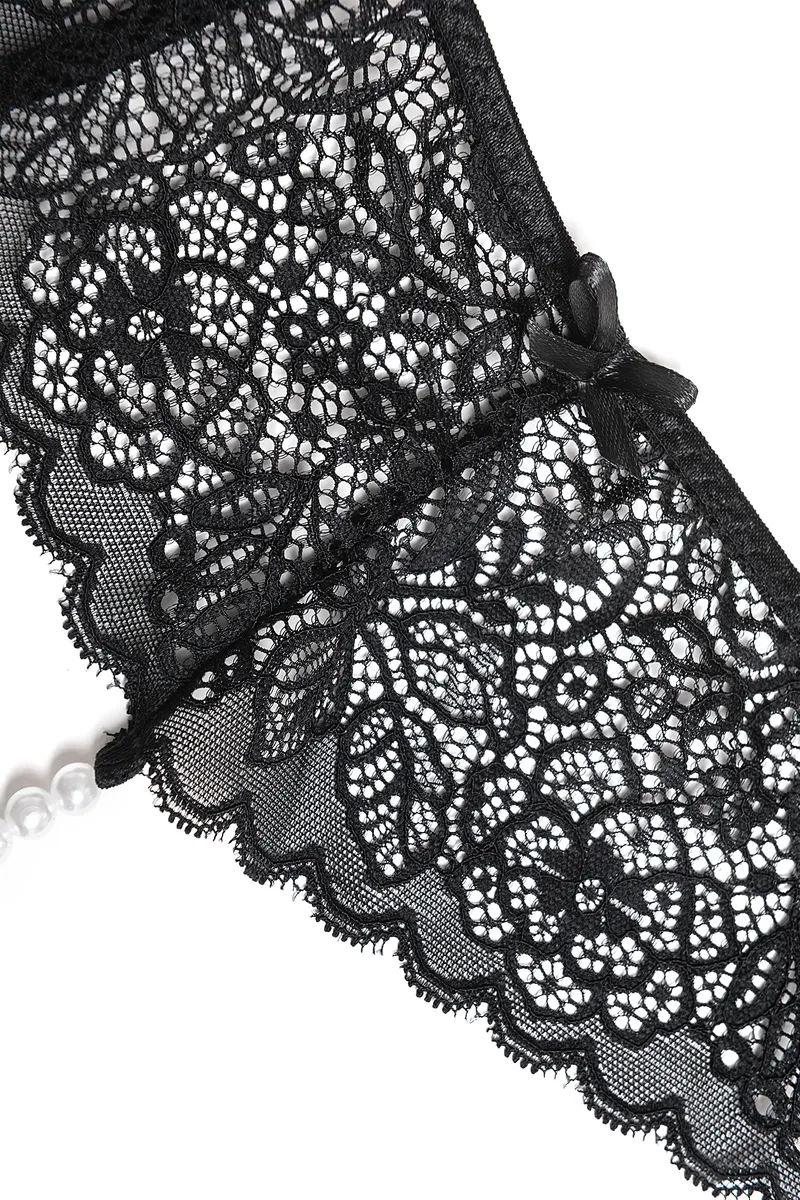 Трусы Eromantica, Freya, с бусами, черные, 42-44
