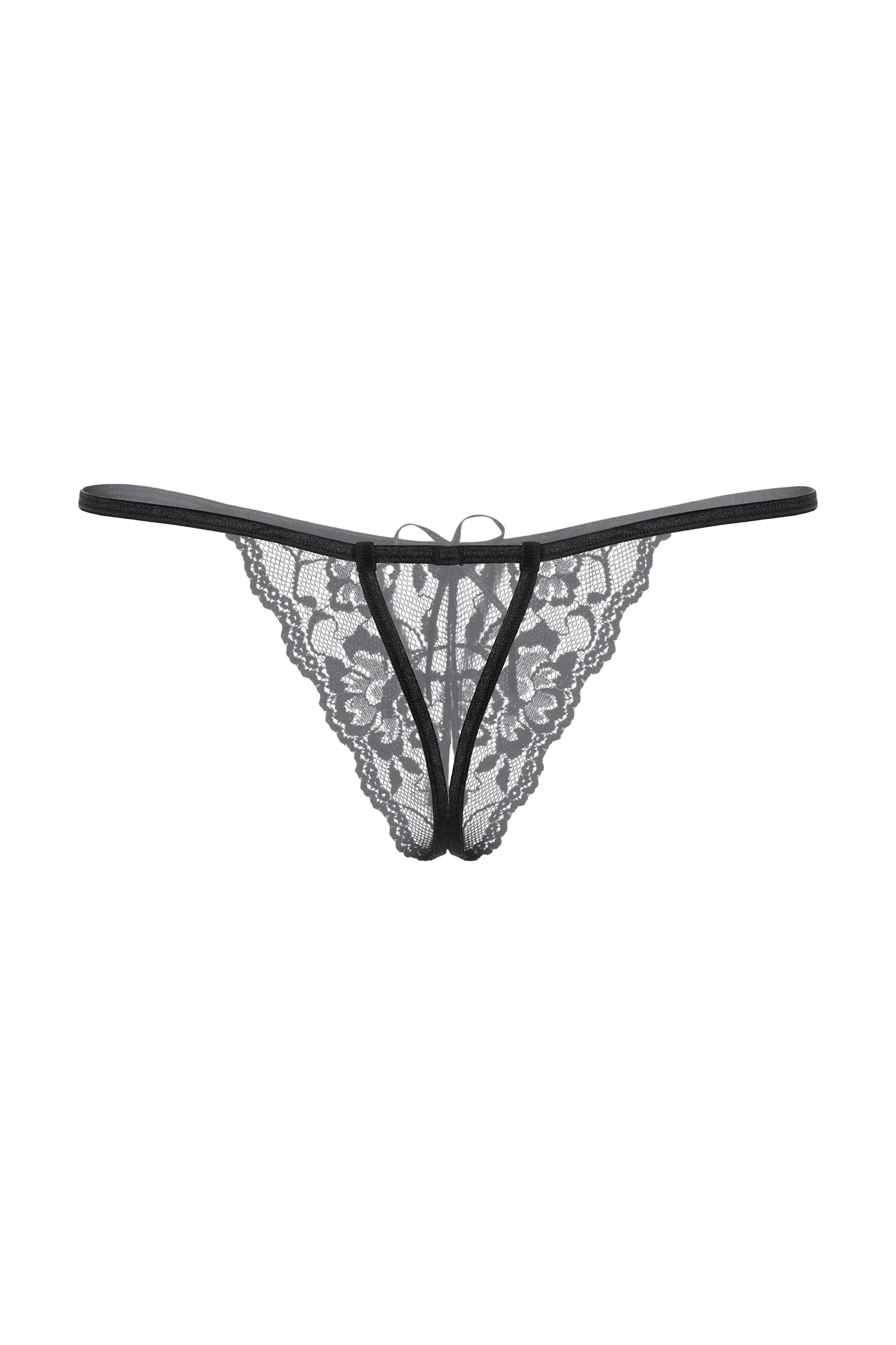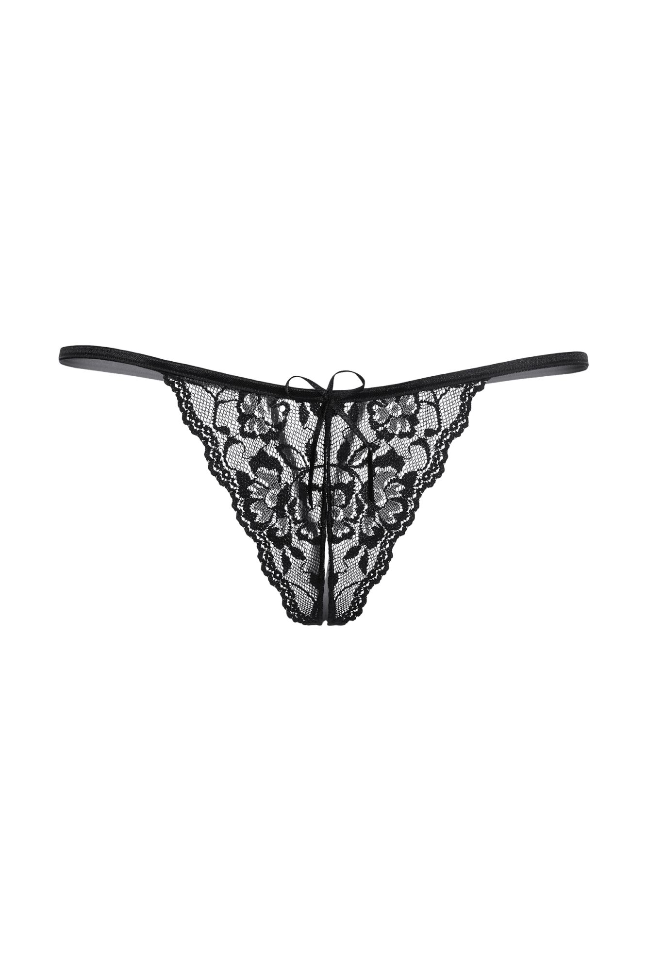 Кружевные Т-стринги с открытым доступом. Спереди декорированы кокетливым бантиком.