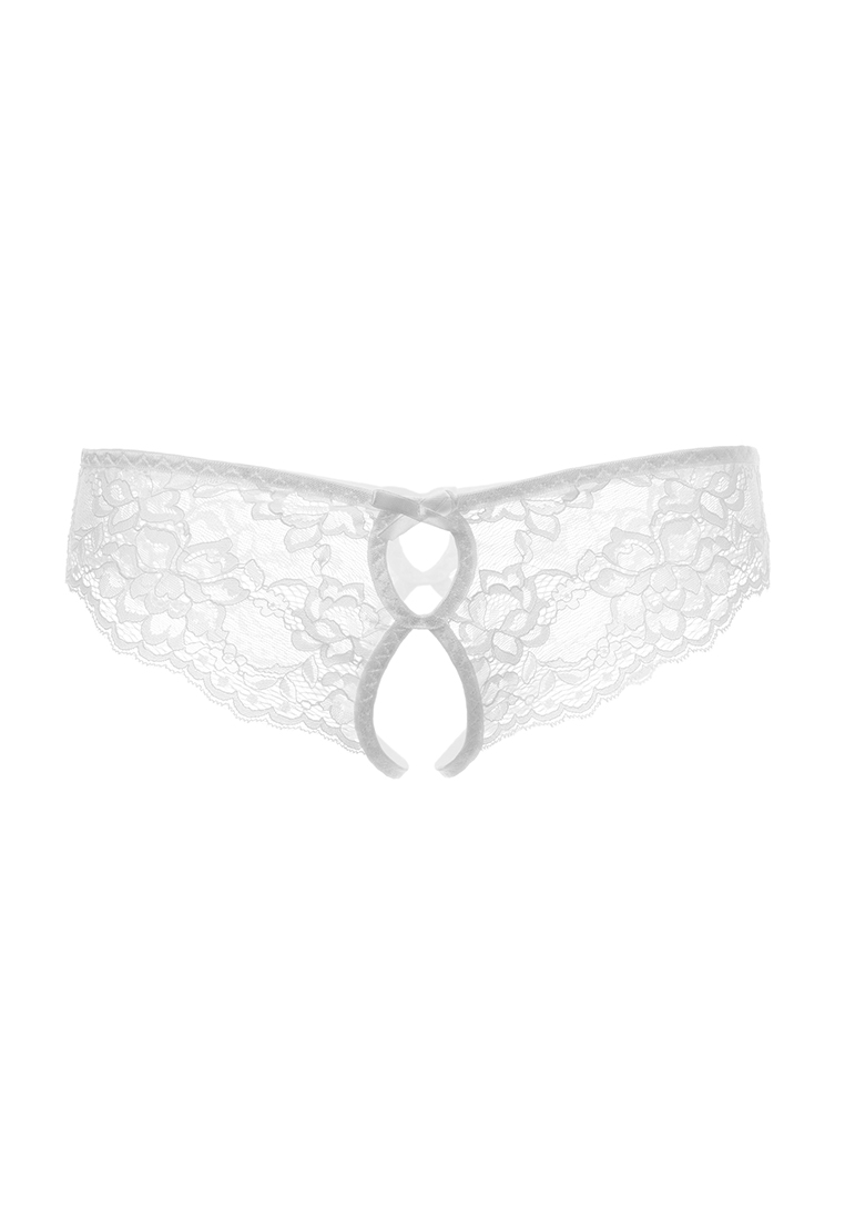 Эротические трусики Erolanta® Alla кружевные, эластичные, с фигурными вырезами, с атласными бантиками, со свободным кружевным краем. *Допускается замена кружева на аналогичное. На видео трусики Erolanta® Alla дополнены бралеттом Erolanta® Odette.