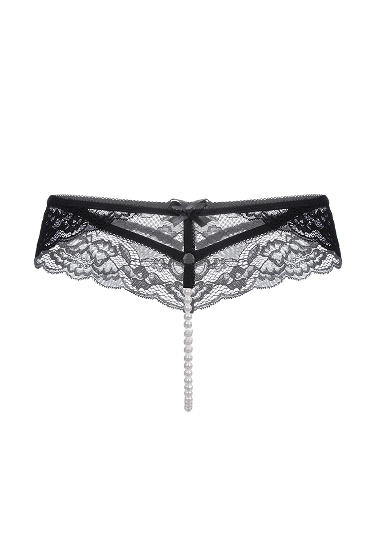 —Эротические трусики с жемчужной нитью Erolanta Amy кружевные, черный (42-44) в пакете