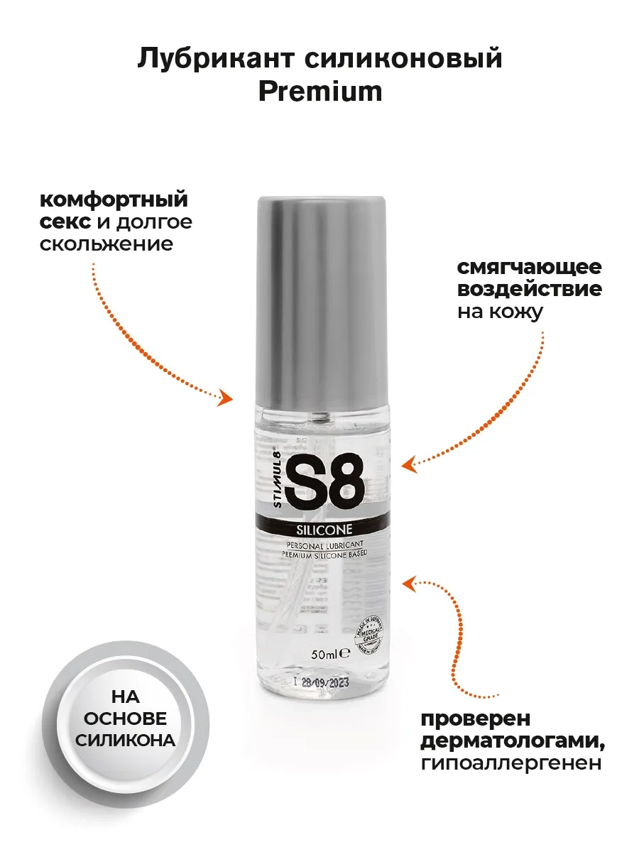 Универсальная смазка на основе силикона Premium от Stimul8 - это комфортный секс, долгое скольжение и никакого вреда для кожи.