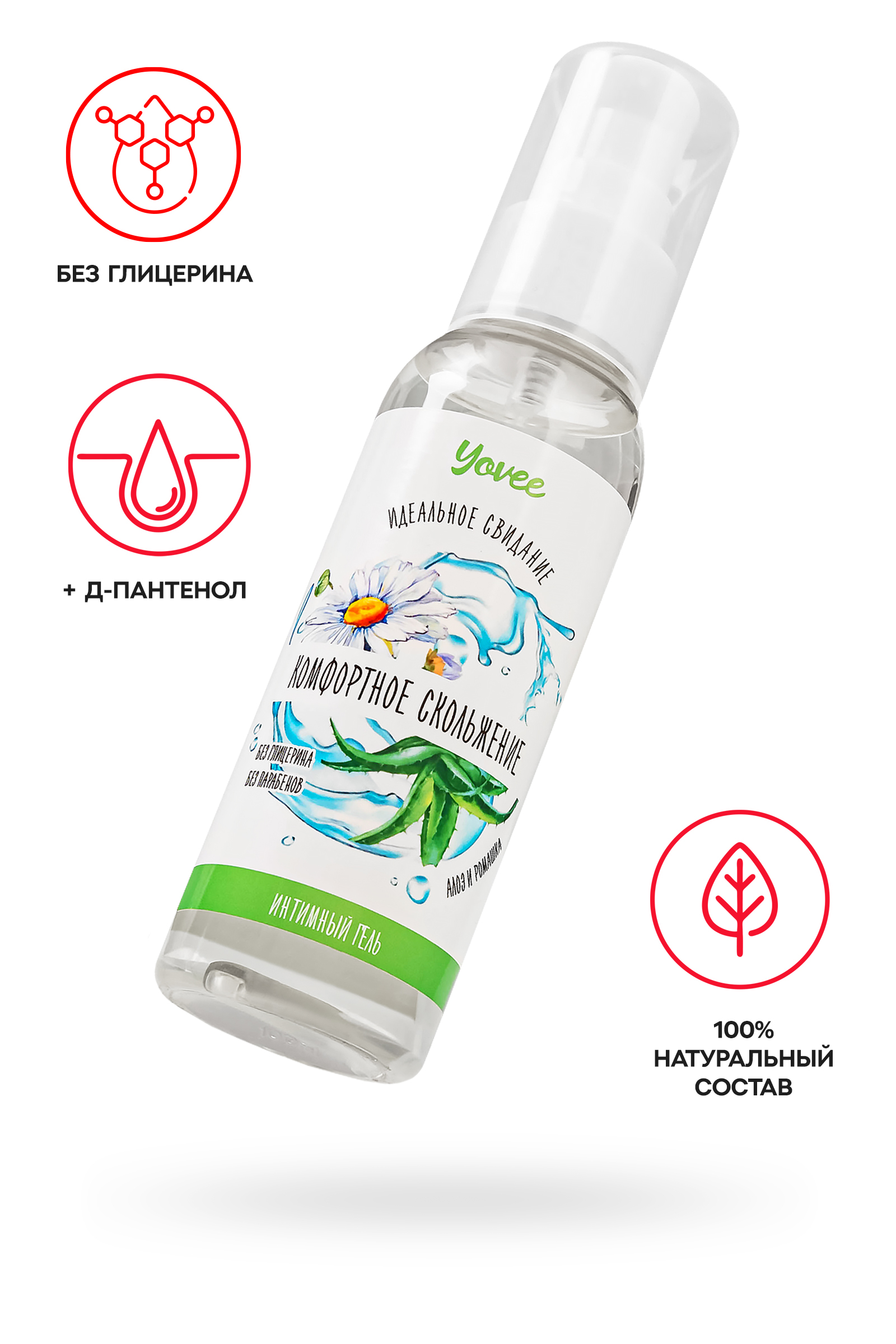 Интимный гель Yovee «Комфортное скольжение» восполняет уровень естественной смазки, создает мягкое и комфортное скольжение без ощущения липкости. Благодаря натуральному составу смягчает и увлажняет, улучшает эластичность кожи и слизистой, снимает раздражение, устраняет сухость влагалища. Легко смывается водой, не оставляет следов на одежде и постельном белье. Подходит как для вагинального, так и для орального секса. Совместим со всеми видами презервативов и игрушек для взрослых. Простой и безопасный состав: вода; Д-пантенол обладает противовоспалительным и увлажняющим действием, запускает защитные силы организма при воздействии инфекционных агентов; алоэ оказывает сильное увлажняющее, бактерицидное и антивозрастное действие, ускоряет регенерацию клеток, снижает воспаление; экстракт ромашки смягчает, уменьшает раздражение, оказывает противовоспалительное действие, снимает зуд и другие неприятные ощущения, способствует обновлению клеток; гидроксиэтилцеллюлоза - стабилизатор эмульсий, регулятор вязкости; бензоат натрия, сорбат калия и лимонная кислота - консерванты. БЕЗ ГЛИЦЕРИНА БЕЗ ПАРАБЕНОВ БЕЗ КРАСИТЕЛЕЙ БЕЗ ВКУСА БЕЗ ЗАПАХА