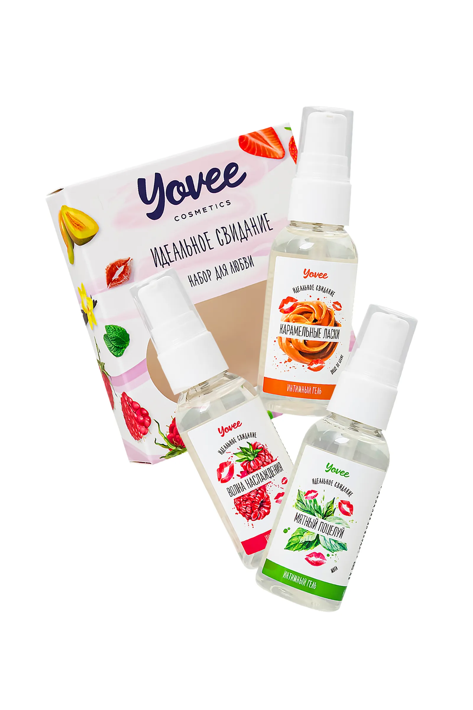 —Набор гелей-смазок Yovee для любви (721002+721006+721014), вкусовые (малина+мята+карамель), 3х50 мл