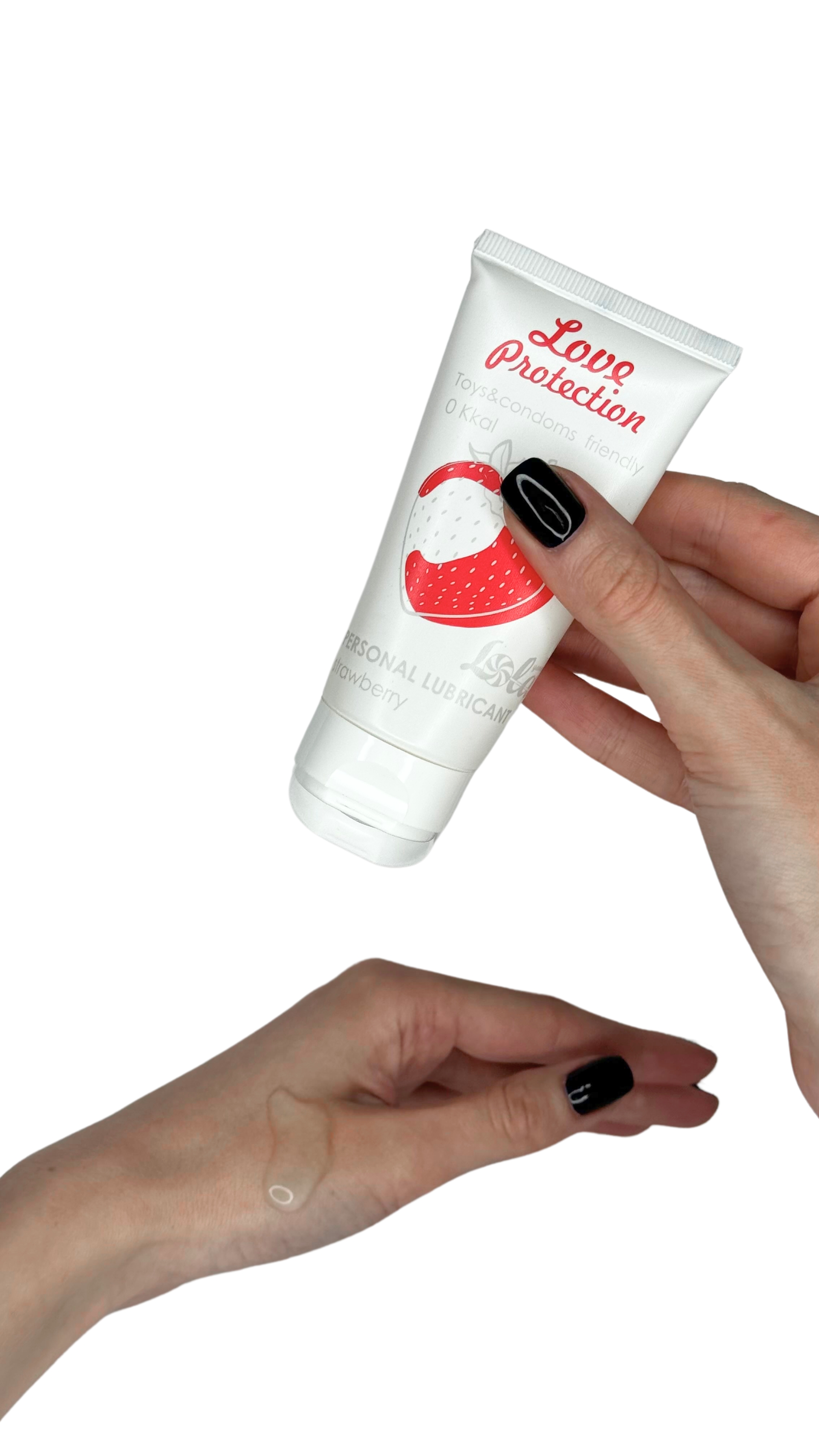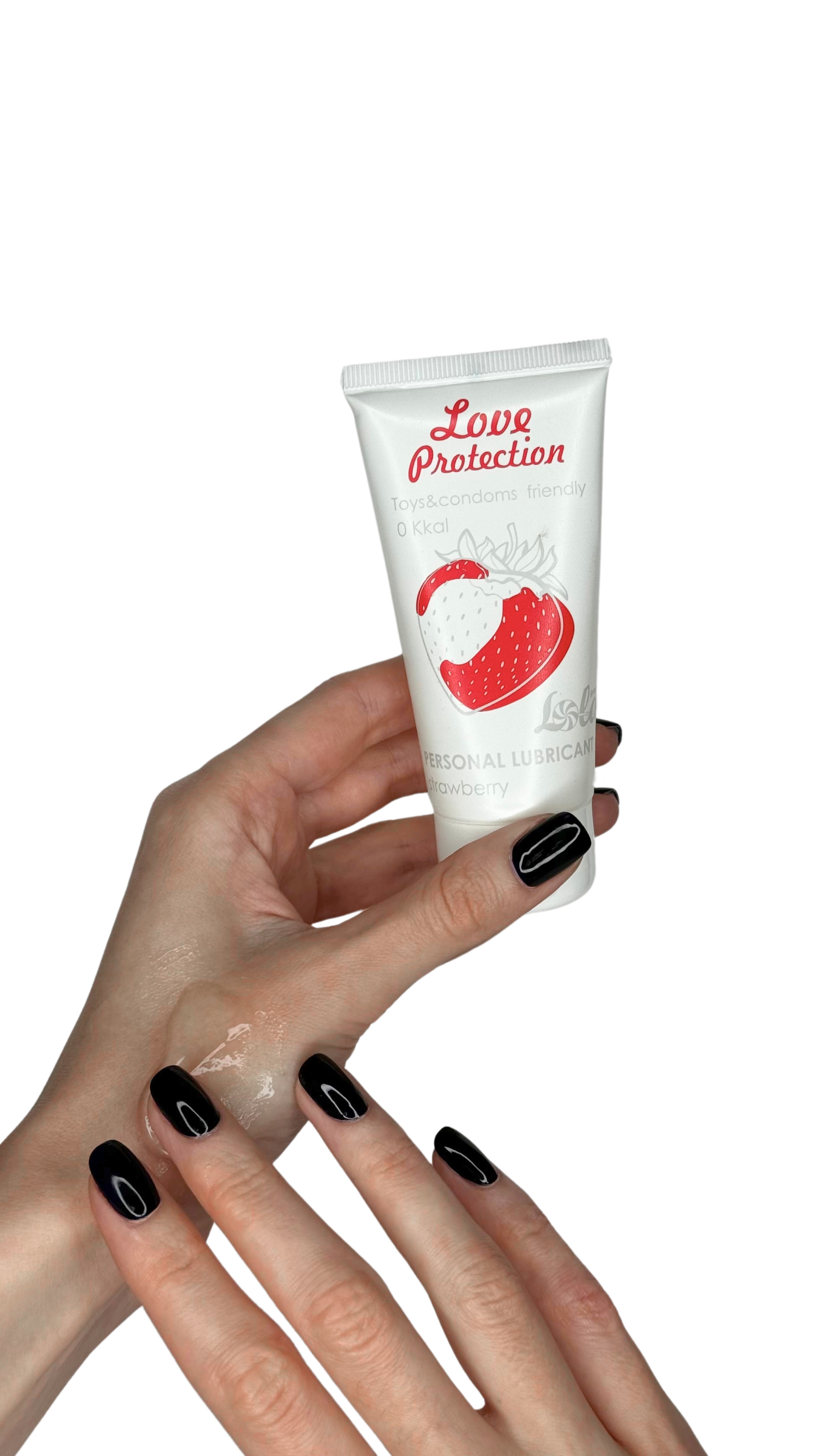 Лубрикант с ароматом клубники на водной основе не содержит калорий. Обеспечивает мягкое скольжение. Только пищевые компоненты в составе. Без красителей. Подходит для использования с презервативами и интимными игрушками. Легко смывается водой. Способ применения: легкими движениями нанесите лубрикант перед половым актом. Необходимое количество лубриканта подбирается индивидуально. После нанесения тубу следует плотно закрыть. Состав: вода очищенная, глицерин, гидроксиэтилцеллюлоза, бензоатнатрия, сорбат калия, пропиленгликоль, ароматизатор пищевой, сахаринат натрия, лимонная кислота.