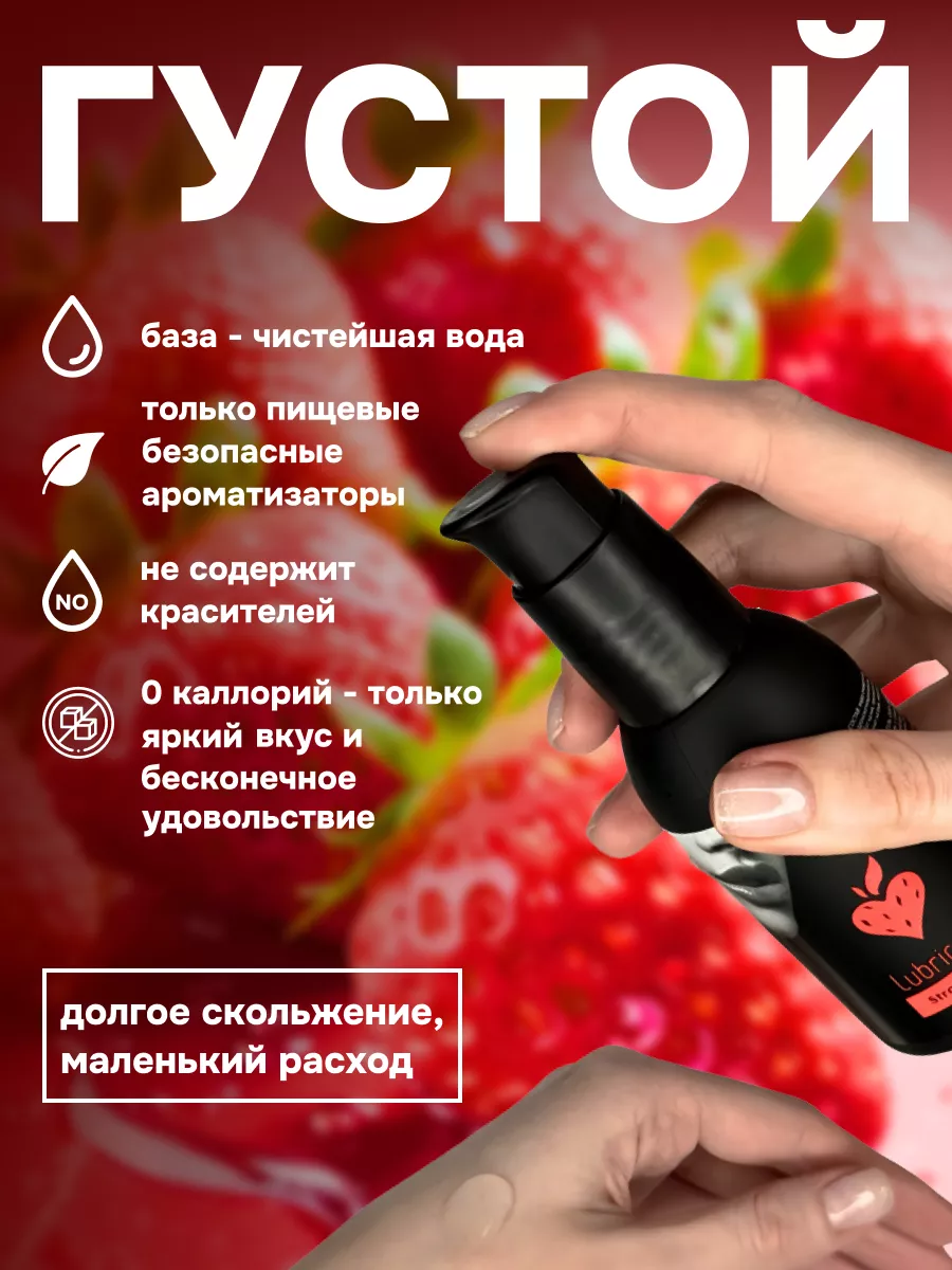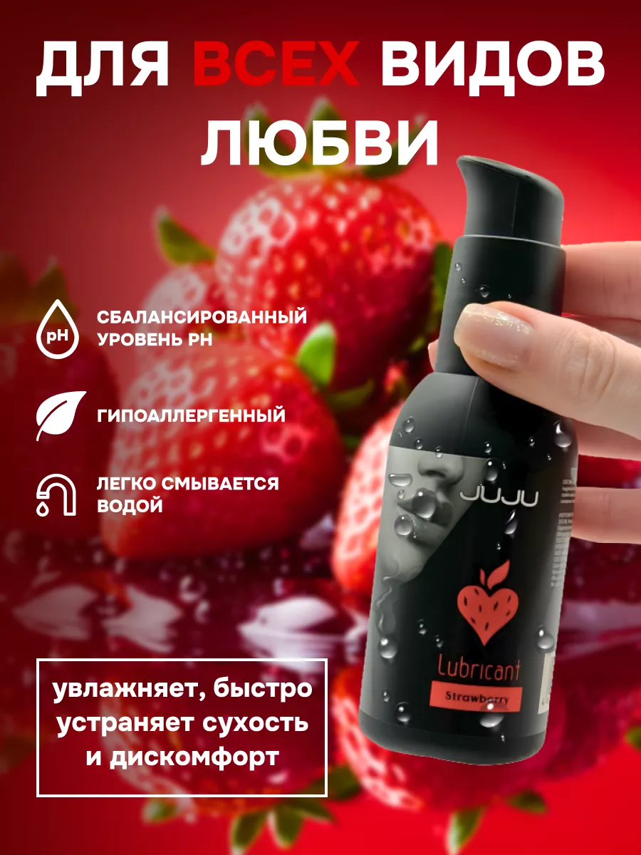 Съедобный лубрикант со вкусом клубники отлично подойдет для любого вида близости. Водная основа смазки позволяет разнообразить интимную жизнь, обеспечивая продолжительное шелковистое скольжение. Лубрикант можно использовать с любыми интим игрушками, а также с презервативами. Состав: вода очищенная, глицерин, гидроксиэтилцеллюлоза, бензоат натрия, сорбат калия, пропиленгликоль, ароматизатор пищевой, сахаринат натрия, лимонная кислота, объем – 100 мл, производитель – JuJu (Россия). срок годности-3 года.