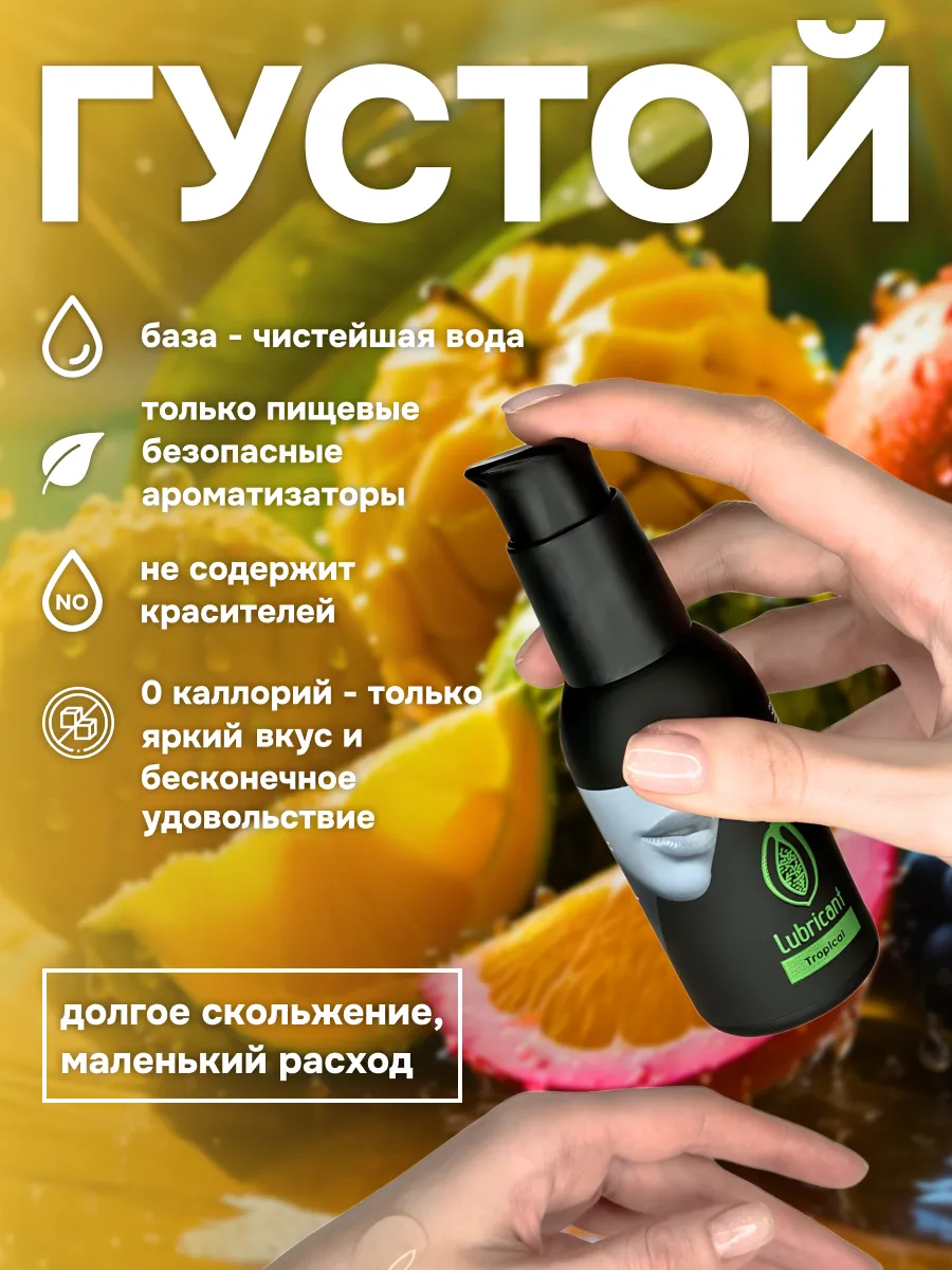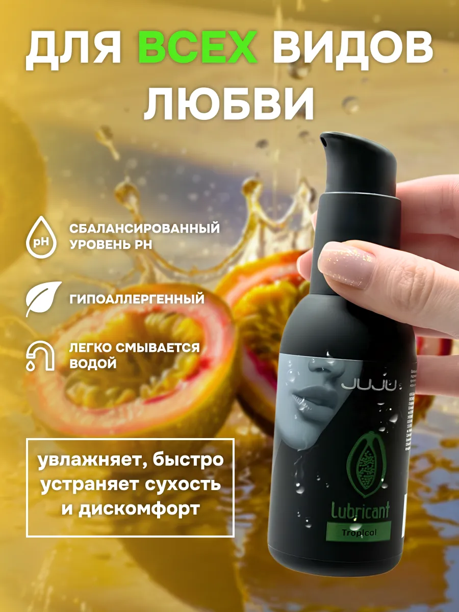 Съедобный лубрикант со вкусом тропических фруктов отлично подойдет для любого вида близости. Водная основа смазки позволяет разнообразить интимную жизнь, обеспечивая продолжительное шелковистое скольжение. Лубрикант можно использовать с любыми интим игрушками, а также с презервативами. Состав: вода очищенная, глицерин, гидроксиэтилцеллюлоза, бензоат натрия, сорбат калия, пропиленгликоль, ароматизатор пищевой, сахаринат натрия, лимонная кислота, объем – 100 мл, производитель – JuJu (Россия). срок годности-3 года.