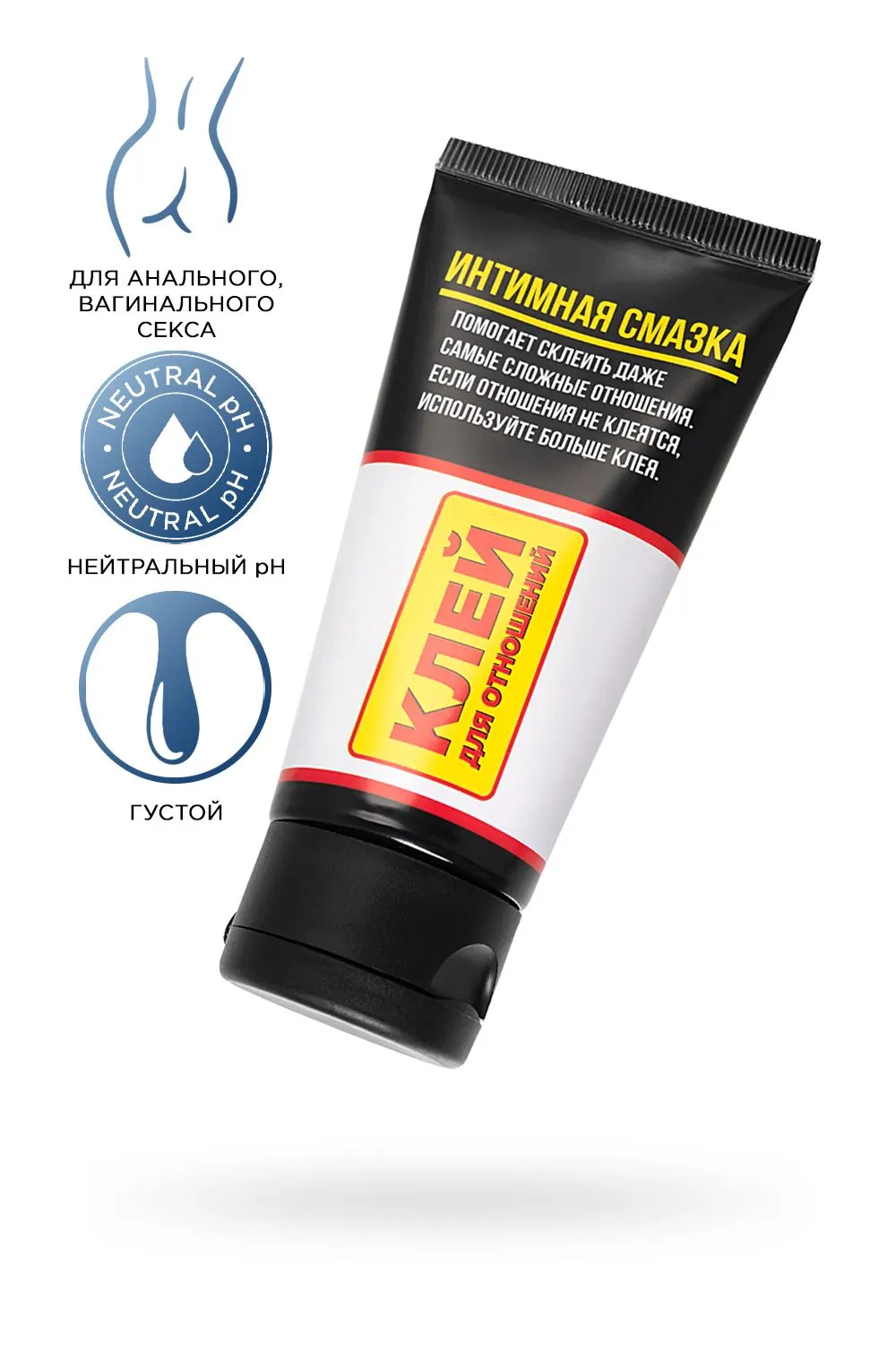 В паре произошел разлад? На помощь придет “Клей для отношений”. Отношения охладели? “Клей для отношений” поможет их оживить. “Клей для отношений” - это интимный лубрикант, помогающий склеить и укрепить отношения. Качественный, безопасный состав повышает уровень комфорта и удовольствия в интимной близости. Яркая упаковка с оригинальным дизайном не только имеет привлекательный вид, но и гарантированно помогает разрядить обстановку и наладить контакт. Упаковка стилизована под тюбик клея. На лицевой стороне присутствует шуточная инструкция по применению. “Клей для отношений” может стать отличным подарком для половинки по поводу и без повода. Сертифицированный товар производится в России и имеет уникальный состав, не нарушает pH баланс естественной флоры. Достойная цена и высокое качество лубриканта на водной основе сделали его востребованным среди мужчин и женщин.