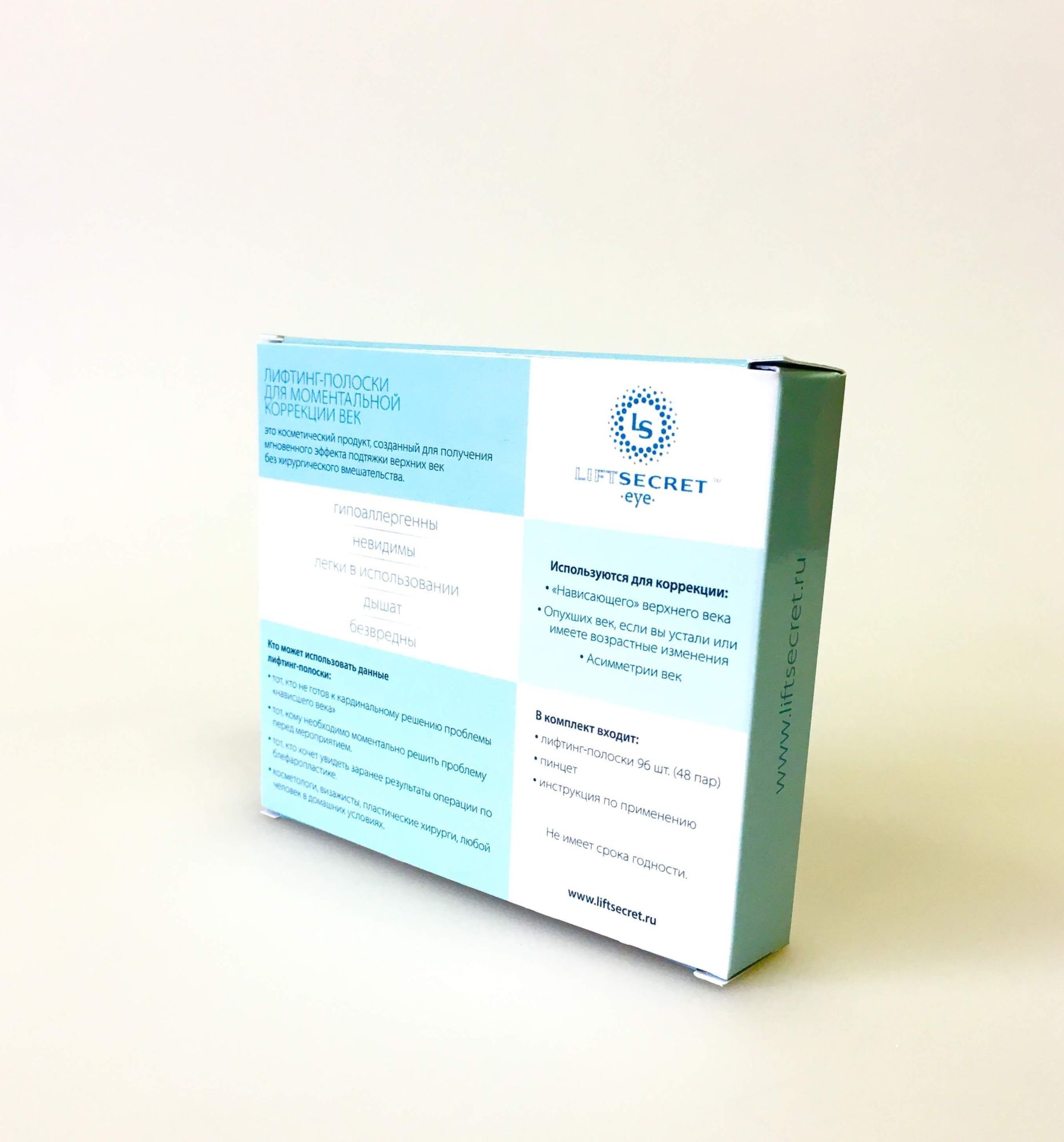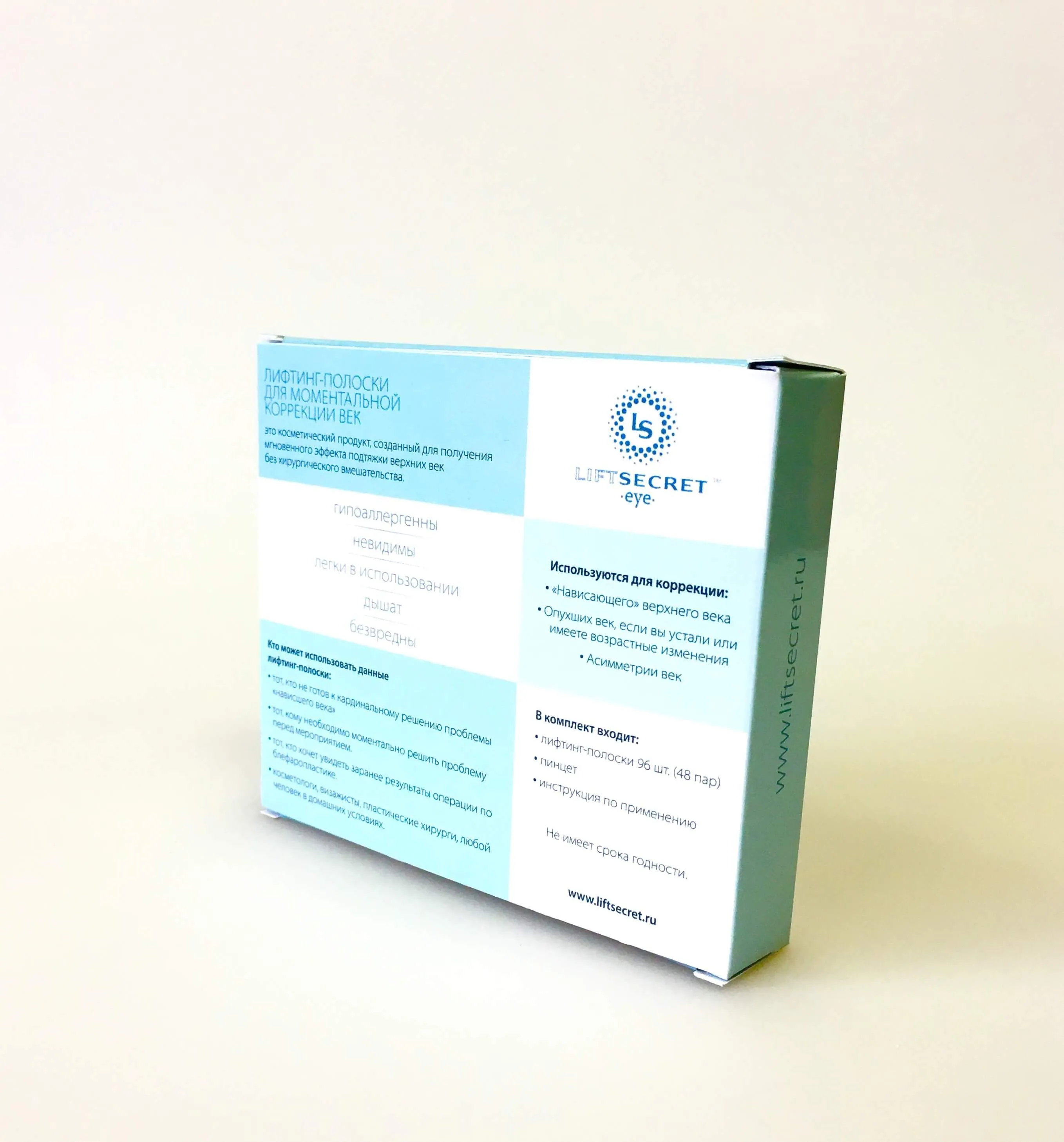 Косметический продукт медицинского класса, созданный для получения моментального эффекта подтяжки верхних век в домашних условиях. Гипоаллергенны, невидимы, легки в использовании, дают дышать Вашей коже и не причиняют ей вреда.