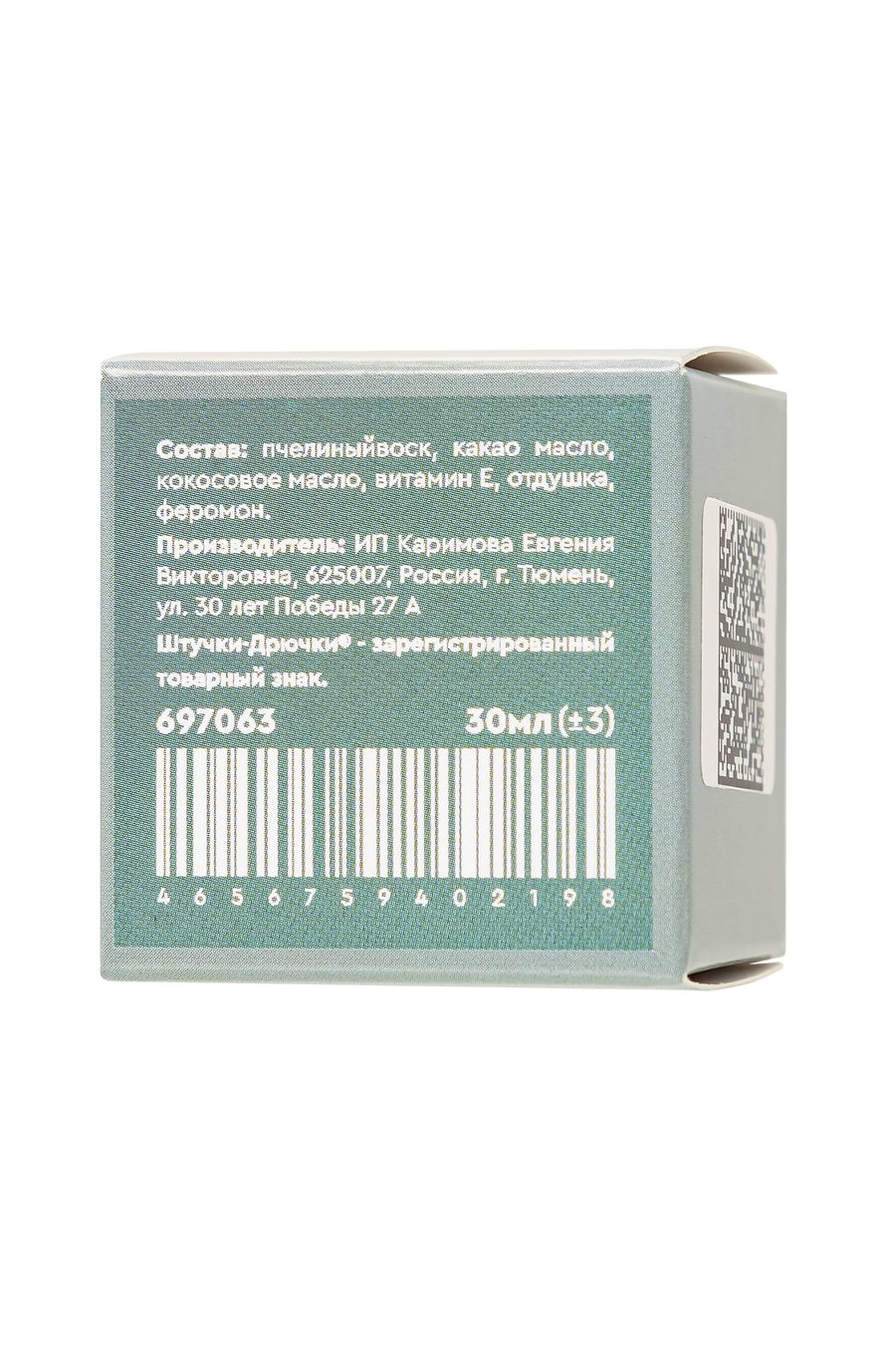 Пчелиный воск, какао масло, кокосовое масло, витамин Е, отдушка, феромон