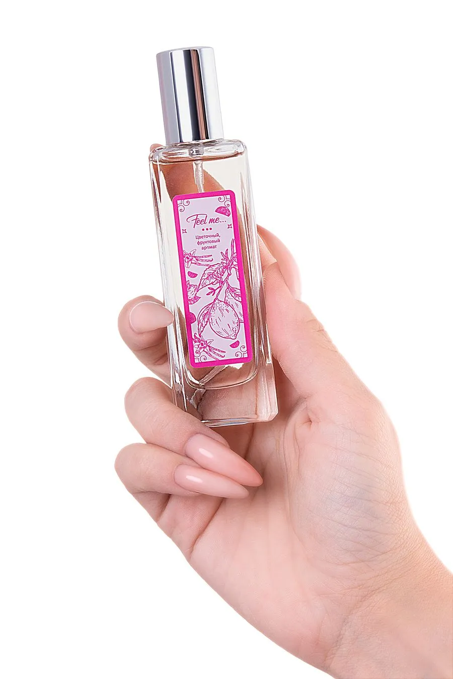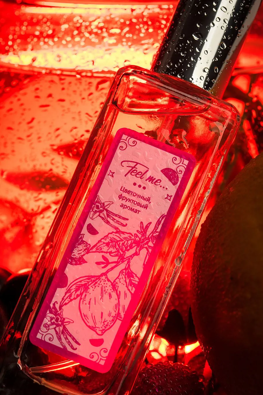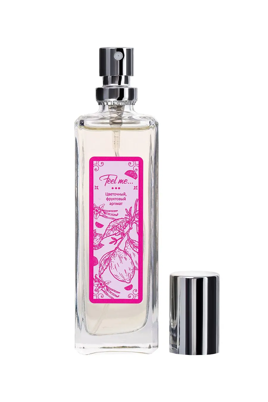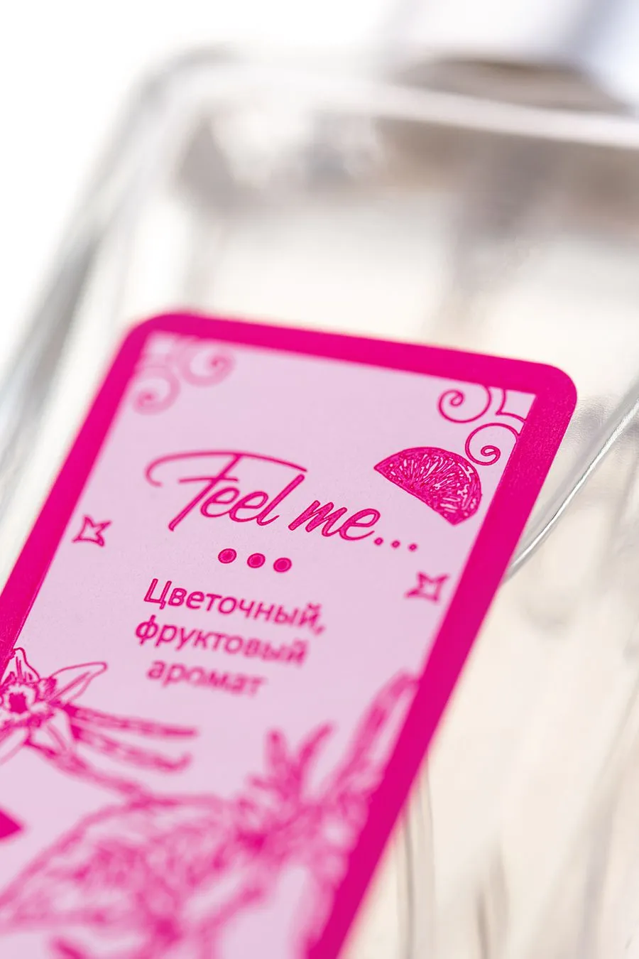 "Это самая чувственная версия серии, которая сплетена из цветочных и фруктовых мотивов. Тонкая вуаль начальных нот ревеня, лимона и мандарина наполнена тропическим солнцем и морским бризом. Легкий и романтичный флер привлекает внимание и вызывает интерес окружающих. Согретые теплом тела ноты сердца раскрываются бутонами алой розы и белой фрезии. Идеальный цветочный тандем подчеркивает женственность образа, заставляя обернуться самых хладнокровных представителей сильной половины человечества. Шлейф базовых нот белого мускуса и ванили проникает в самое сердце и остается в памяти навсегда. Именно поэтому композиция носит название, которое переводится как «Чувствуй меня…»."