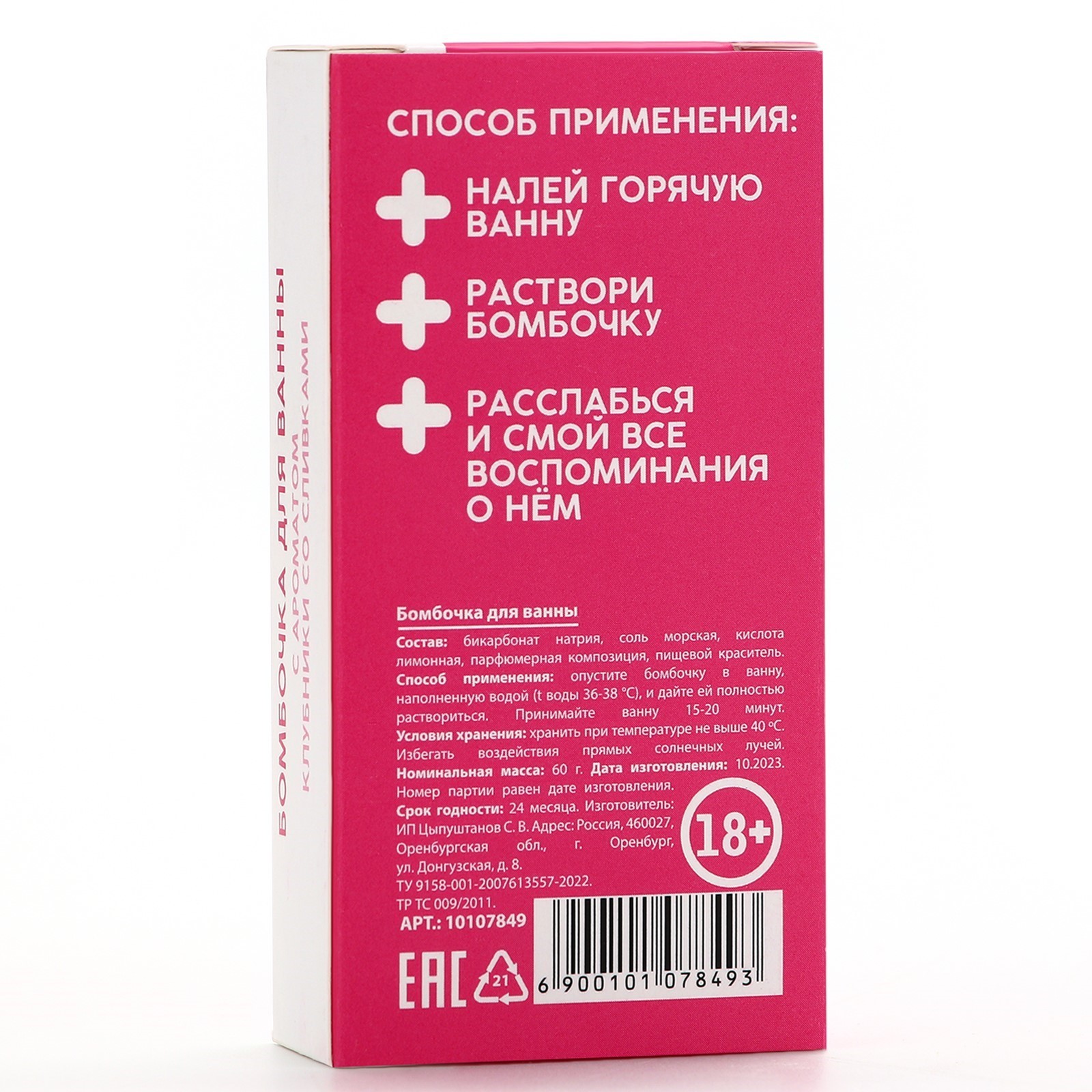 Бомбочка для ванны «Анафигон» от бренда "Чистое счастье" - это не просто средство для расслабления и ухода за кожей, но и отличный подарок для взрослых женщин. Продукт имеет розовый цвет и аромат клубники со сливками. Это не просто приятный запах, но и источник наслаждения для вашей кожи. Бомбочка для ванны «Анафигон» имеет вес 60 грамм, что делает ее достаточно большой для одного использования. Упаковка товара выполнена в виде термоусадочной пленки, что обеспечивает сохранность продукта во время транспортировки и хранения. Продукт предназначен для взрослых женщин и имеет возрастные ограничения 18+. Продукт имеет температурный режим от +5 до +25 градусов Цельсия, что позволяет использовать его в любое время года. В целом, бомбочка для ванны «Анафигон» - это не только приятный и полезный подарок, но и возможность подарить себе и близким минуты истинного наслаждения и релаксации.