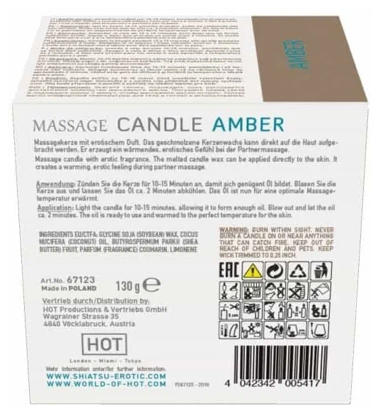 Массажная свеча Shiatsu с насыщенным ароматом пачули при горении превращается в шелковистый воск, который можно наносить на кожу. Горящая свеча, распространяющая вокруг возбуждающий аромат, создаст незабываемую атмосферу, наполненную романтикой и магией любви. Ее расплавленный воск сделает сеанс массажа чувственным и, нанесенный на кожу, подарит обоим партнерам ощущение возбуждающего тепла. Во время массажа аромат пачули раскрывается и усиливается.