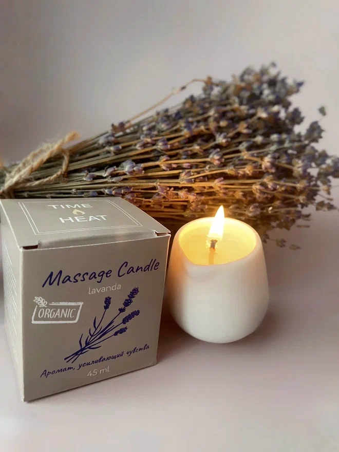 Дополните свой романтический вечер с партнёром нежным расслабляющим массажем. Массажная свеча с ароматом Лаванды поможет создать атмосферу тепла и мягко снимет напряжение, а в сочетании с ласковыми руками любимого/любимой сотворит настоящее чудо. ECO состав масел обладает сильным увлажняющим и согревающим действием. Кокосовый воск не скатывается на теле во время массажа и делает процесс более приятным и нежным.