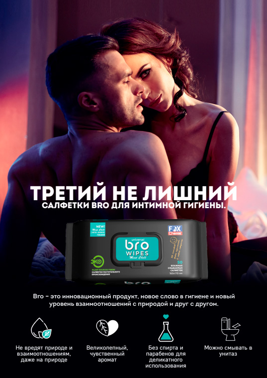 Универсальные салфетки BRO подходят для интимной гигиены, потому что не содержат спирта и парабенов. Не вредят природе. А вам на природе очень пригодятся.