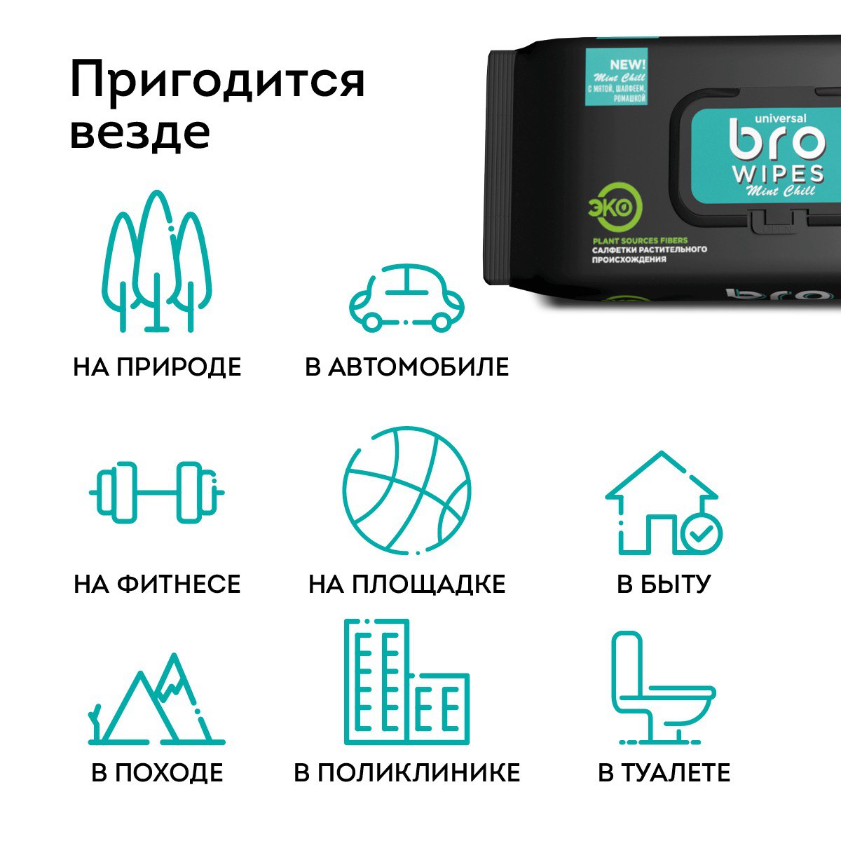 Универсальные влажные салфетки BRO - это эффективный помощник для быстрого очищения рук или тела, а так же незаменимый вариант уборки любых поверхностей и удаления загрязнений.