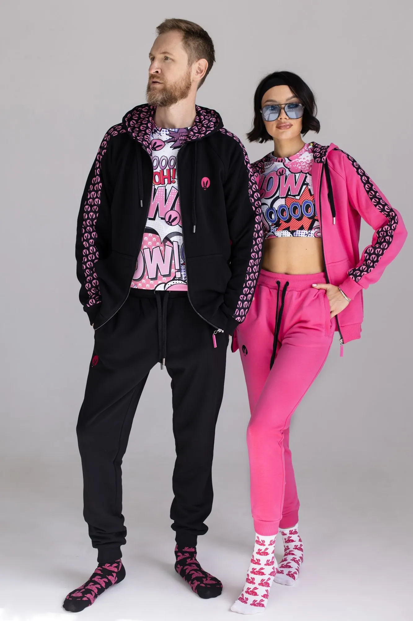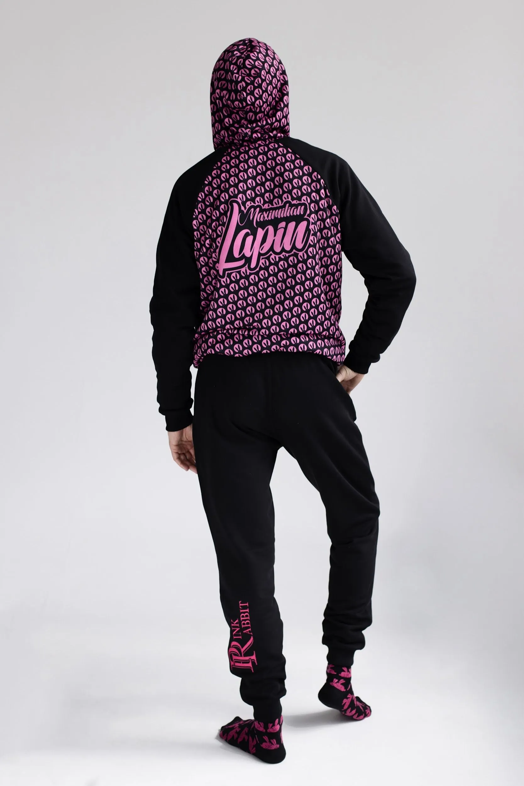 Стильный и универсальный костюм от Pink Rabbit подойдет как для занятий спортом, так и для каждодневных дел. Приятная на ощупь ткань позволяет активно двигаться и работать в костюме. Контрастные фирменные цвета –черный и розовый не останутся незамеченными. На форме имеется принт «Розового Кролика», поэтому комплект можно подарить истинным фанатам нашего интим-бутика.