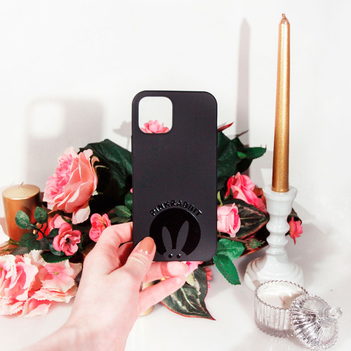 —Чехол PinkRabbit на iPhone 12 ProMax с черным кроликом