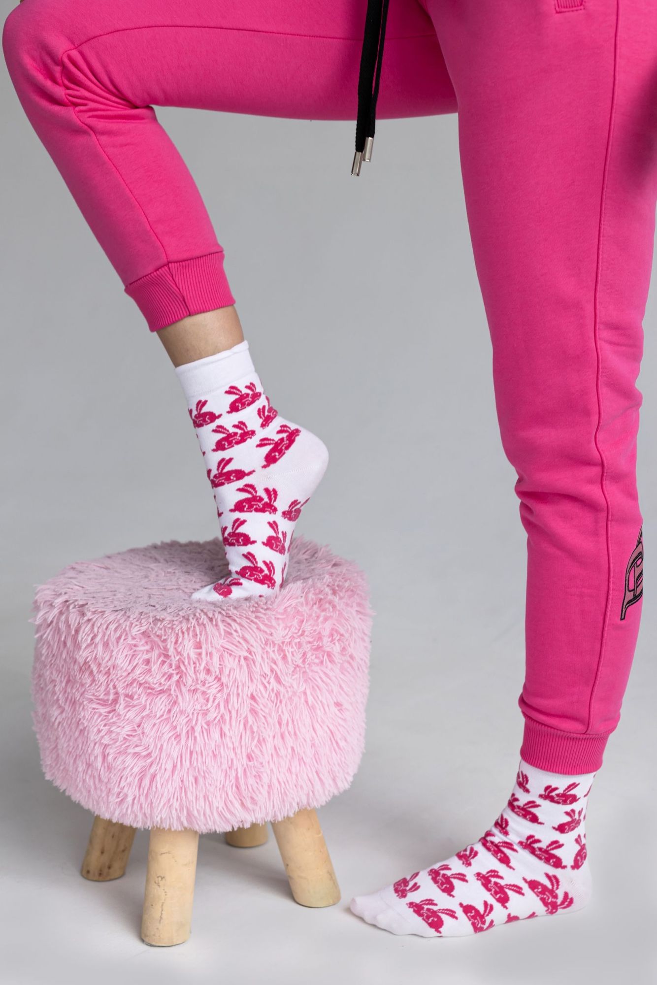 Мягкие и уютные женские носки, которые согреют ваши ножки и поднимут настроение! Выполнены в нежном белом цвете и украшены очаровательным принтом – любящих друг друга розовых кроликов. Идеальный выбор для тех, кто ценит комфорт и милый дизайн. Добавьте немного игривости в свой повседневный образ!